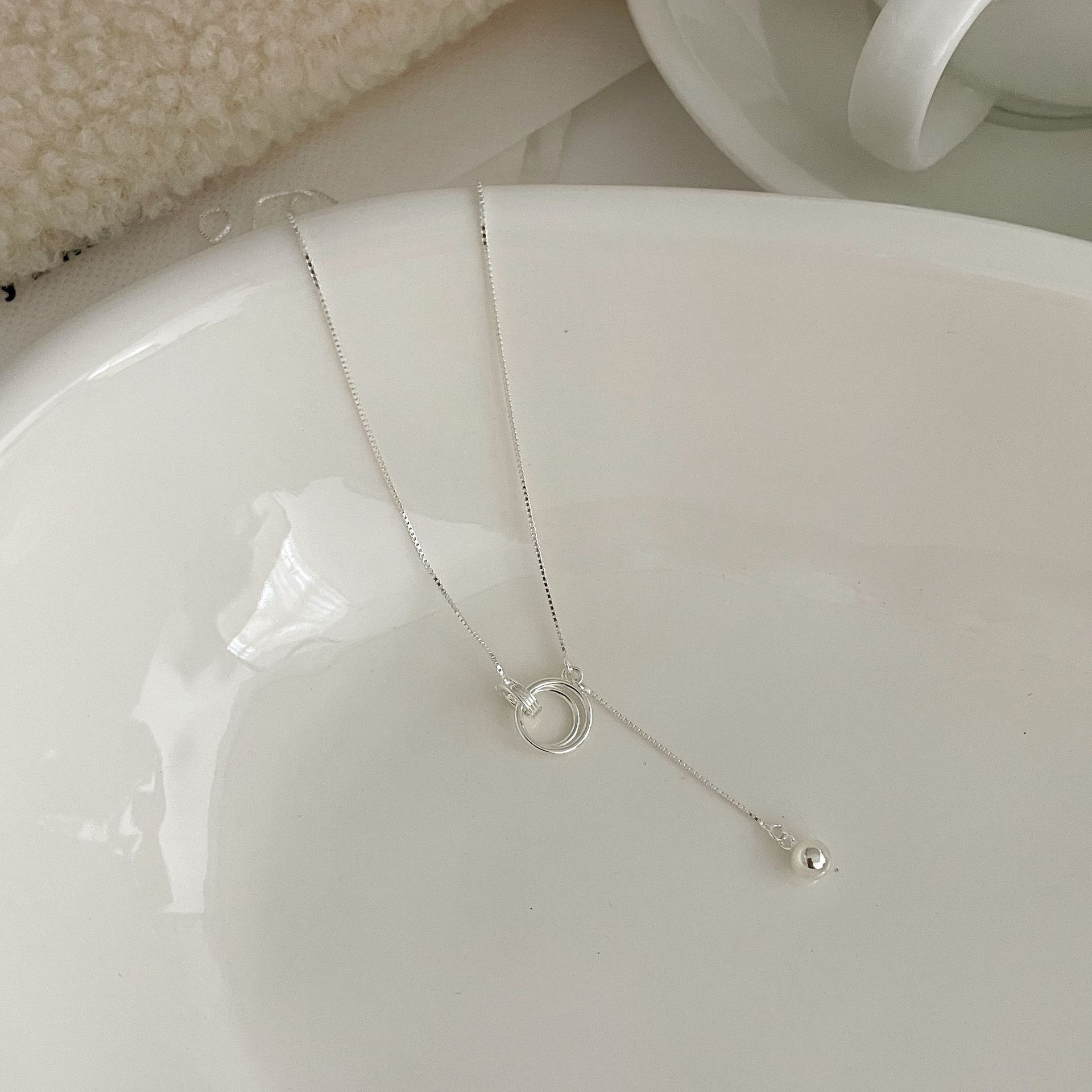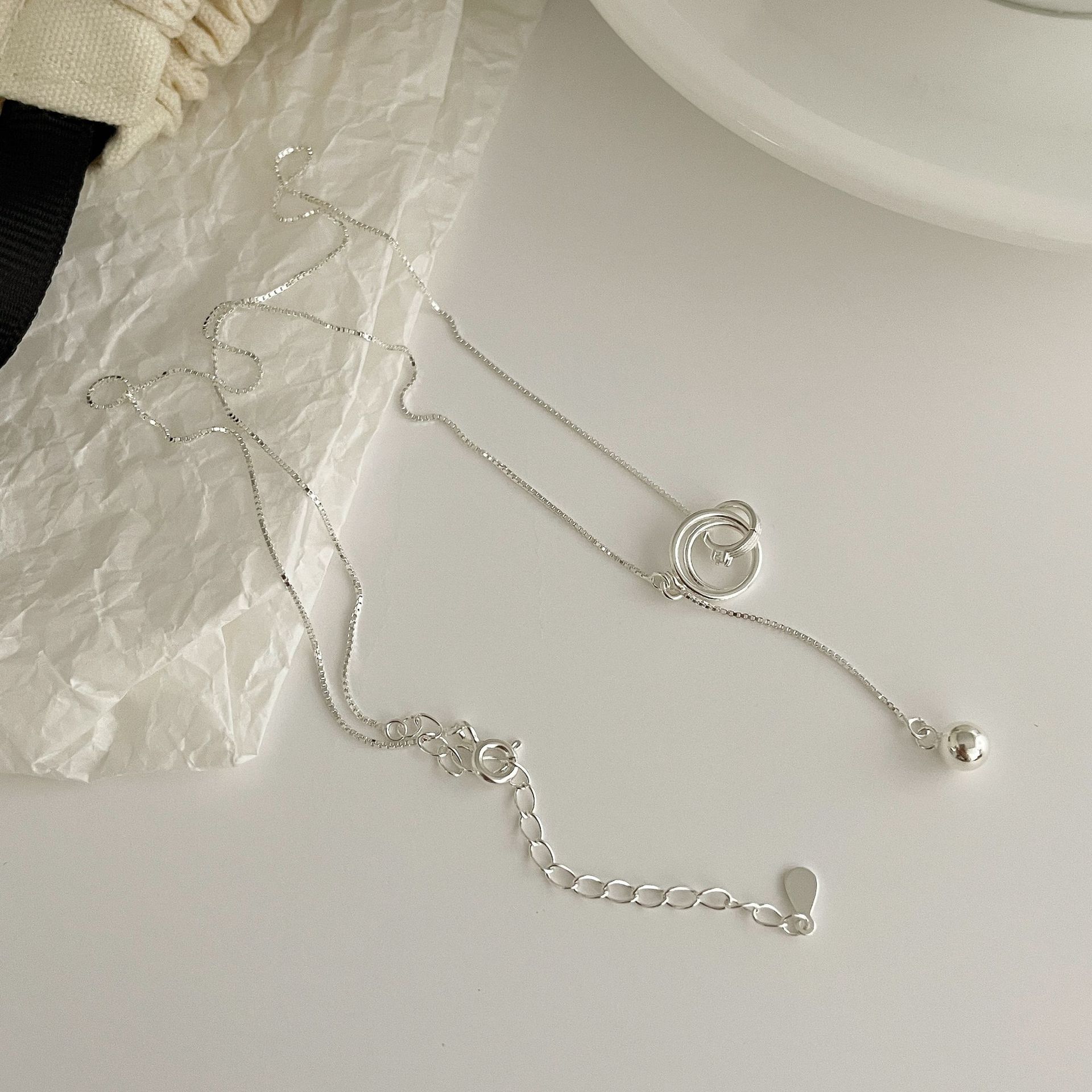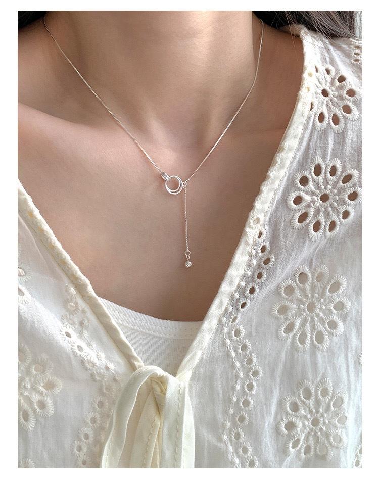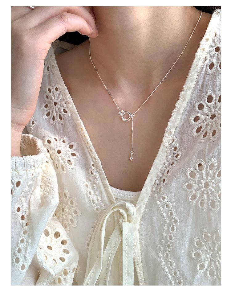 Collar de cadena con anillo de plata esterlina S925 estilo coreano Saina para mujer, elegante y moderno, con diseño de planetas de viento que rodea la clavícula.