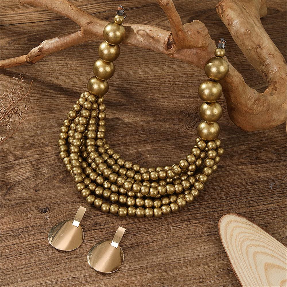 [Nombre del producto] Collar simple de cadena de clavícula trenzada con cuentas hechas a mano exageradas de personalidad retro africana de gran venta, juego de aretes