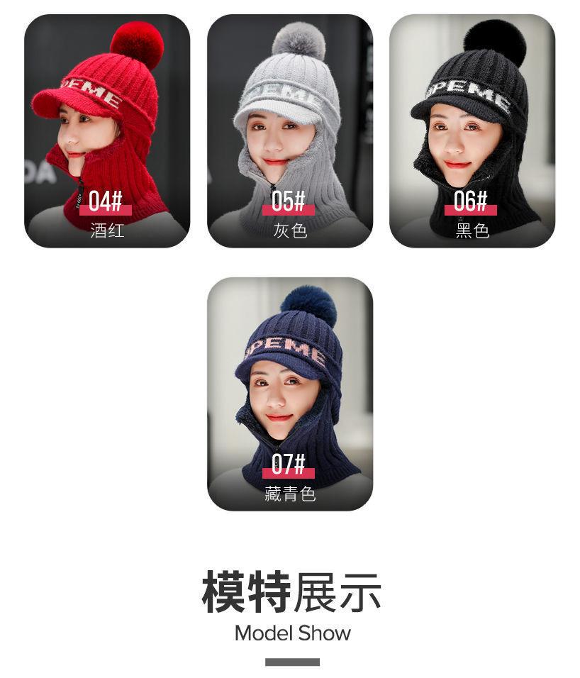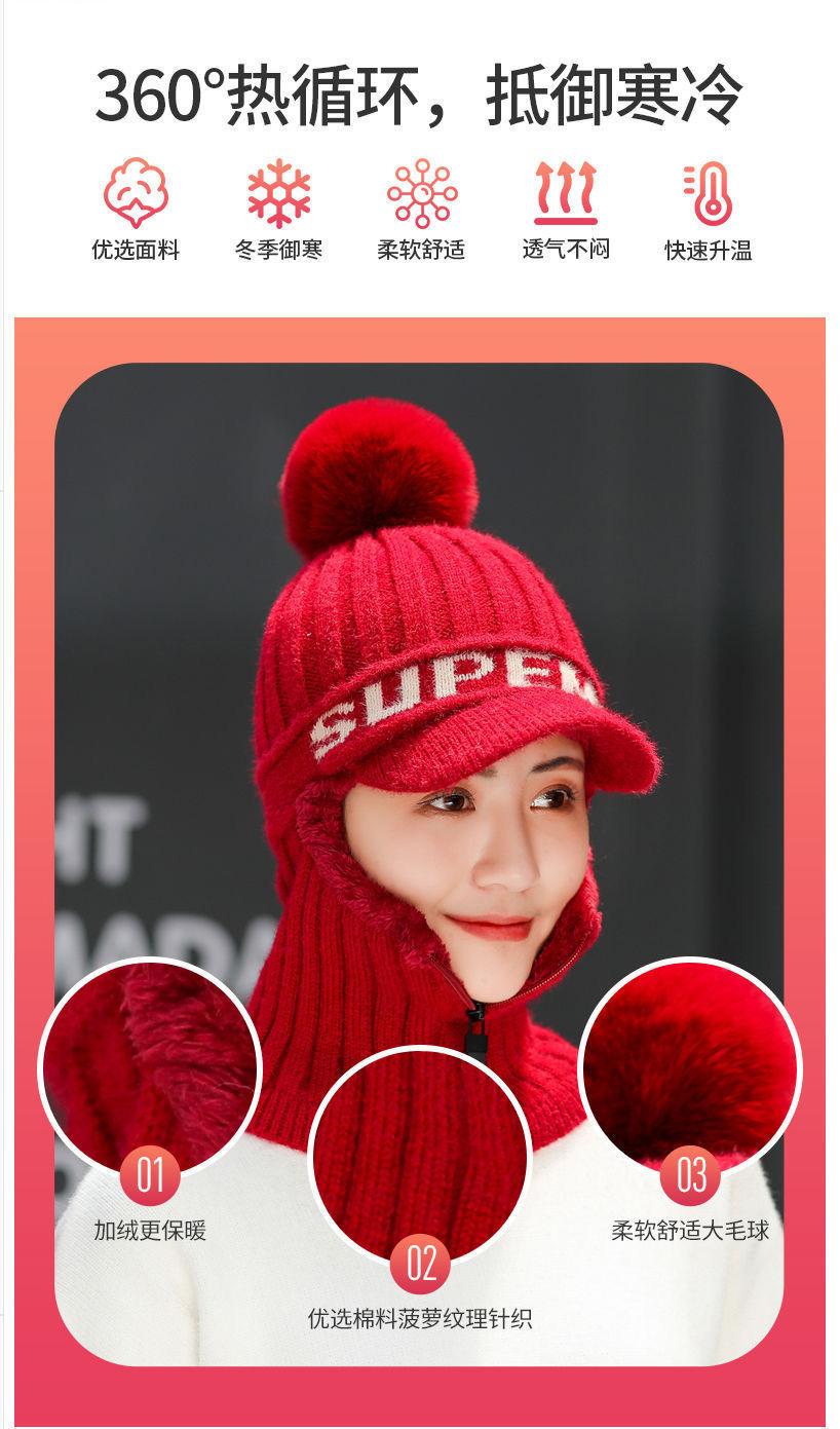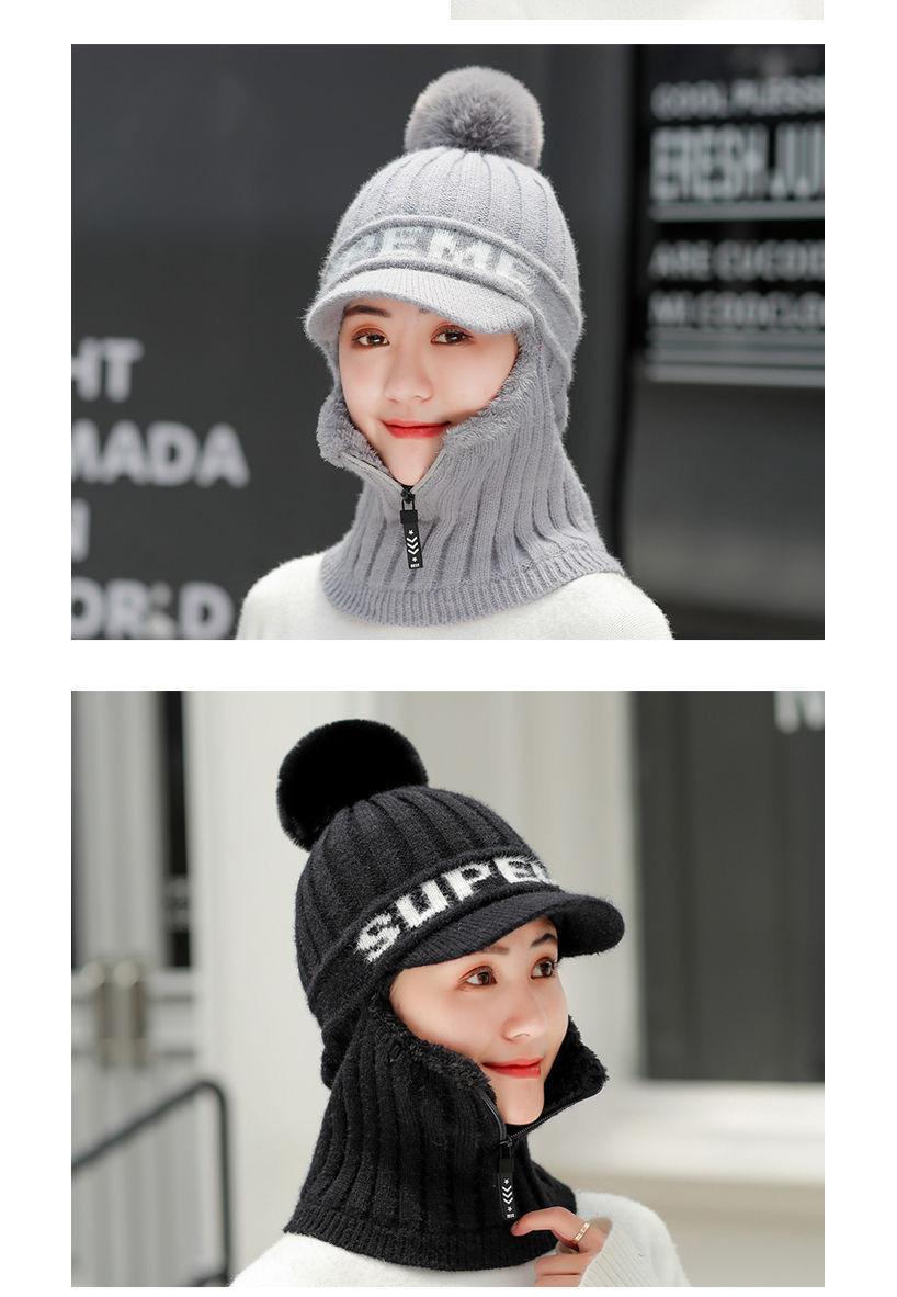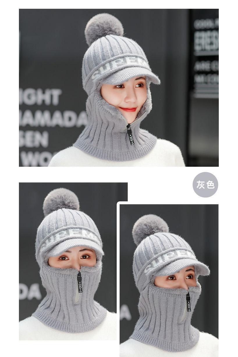 Gorro de otoño e invierno con bufanda, gorro de punto integrado, gorro de ciclismo para exteriores, resistente al viento, con cremallera, gorro de lana cálido de terciopelo.