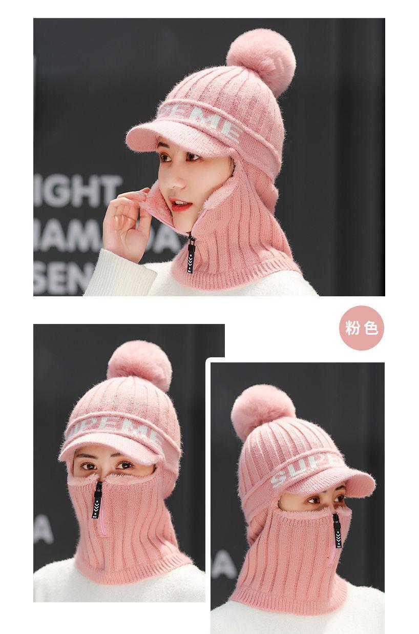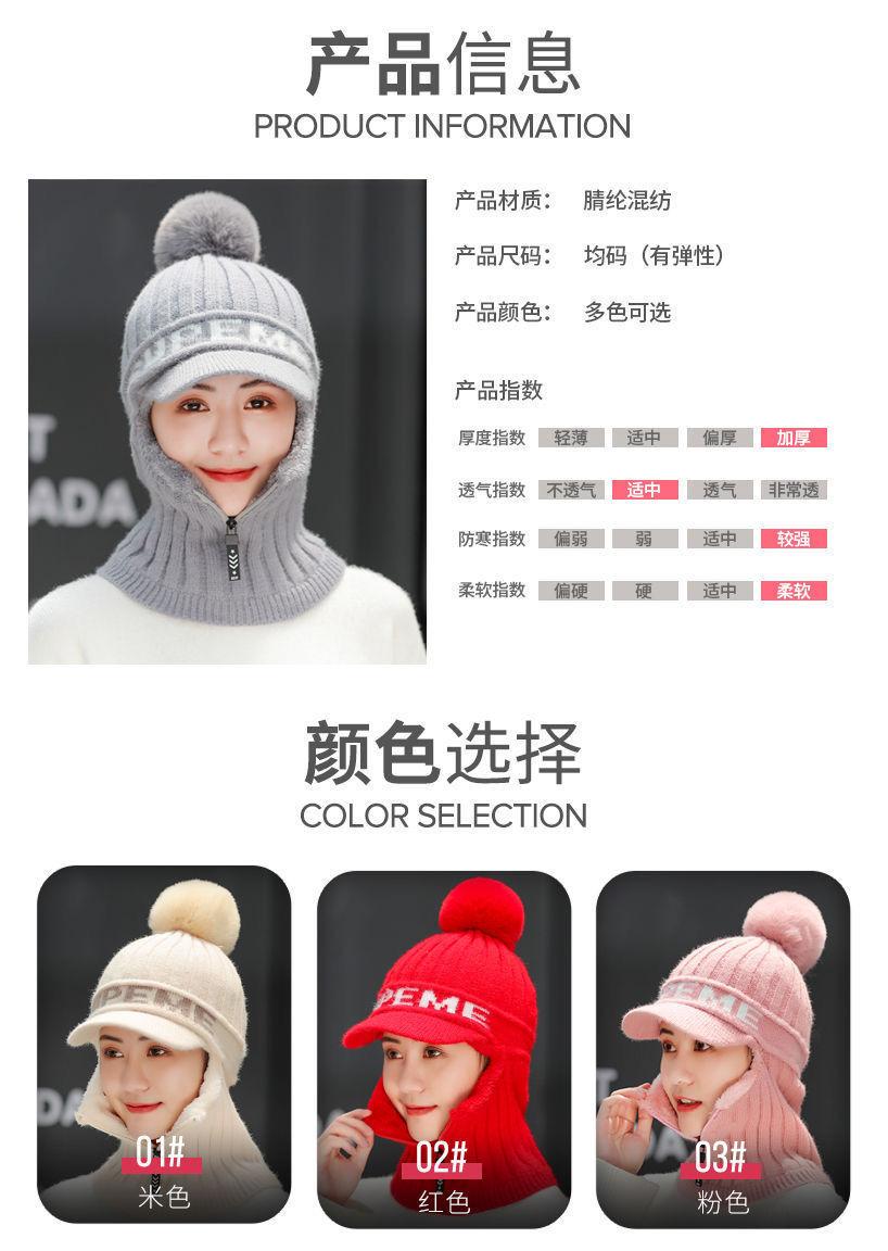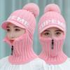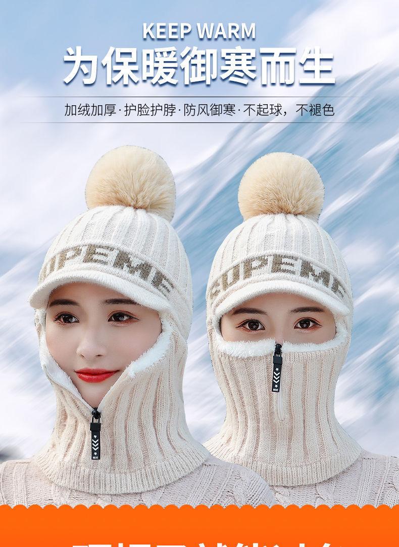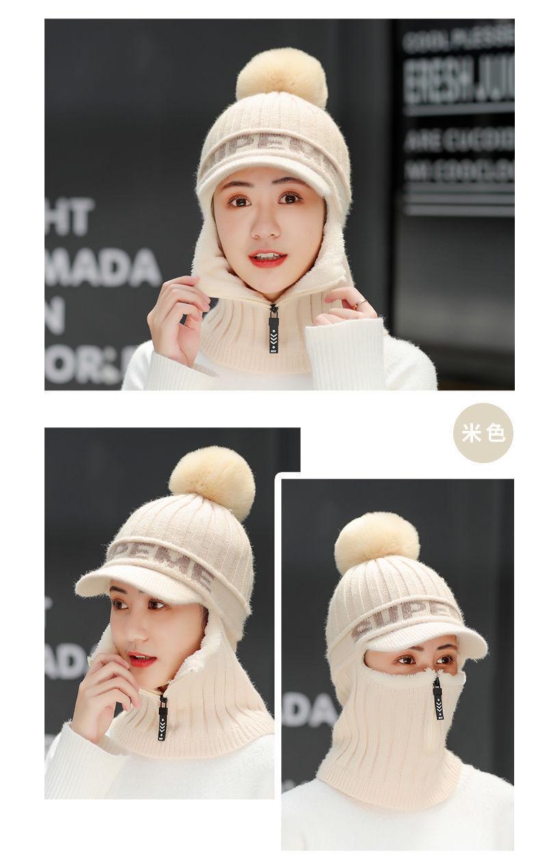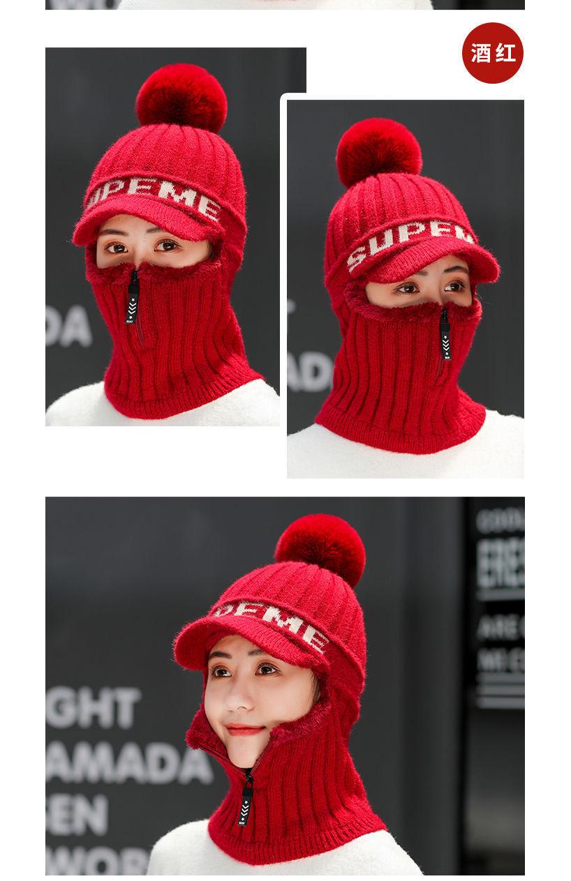 Gorro de otoño e invierno con bufanda, gorro de punto integrado, gorro de ciclismo para exteriores, resistente al viento, con cremallera, gorro de lana cálido de terciopelo.