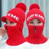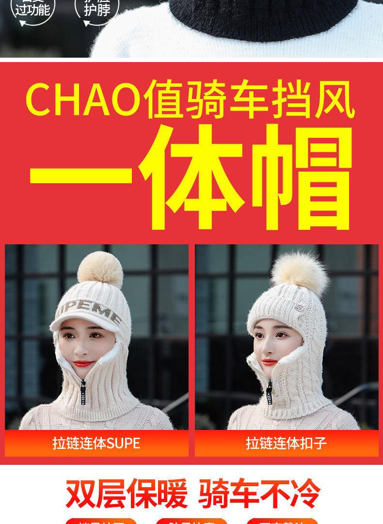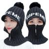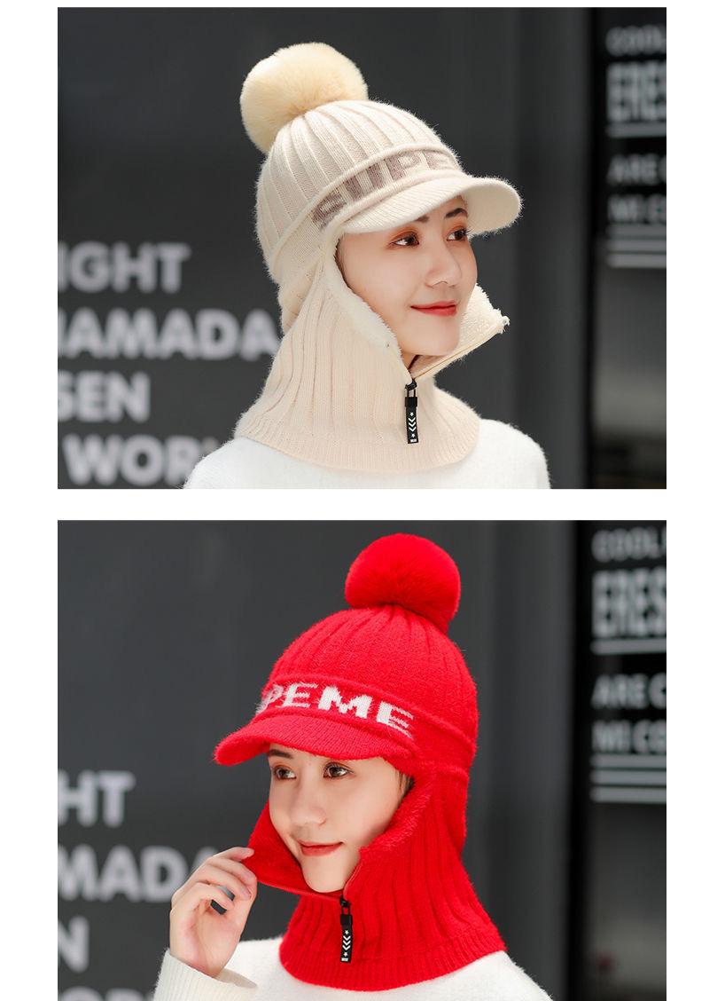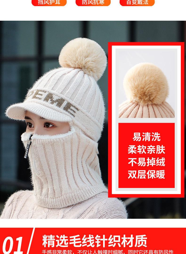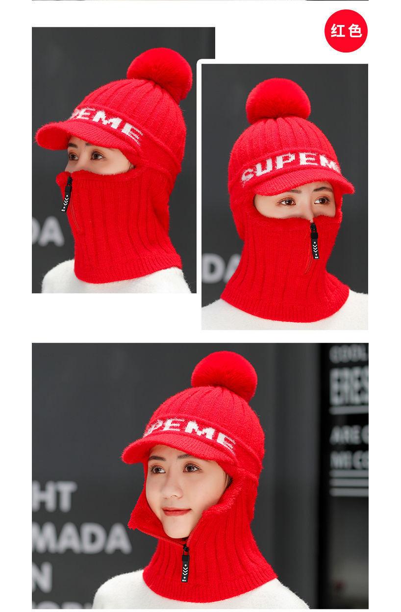 Gorro de otoño e invierno con bufanda, gorro de punto integrado, gorro de ciclismo para exteriores, resistente al viento, con cremallera, gorro de lana cálido de terciopelo.