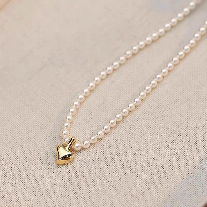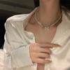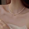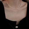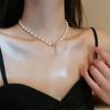 Collar con colgante de perla de estilo francés, extremadamente fino, con diseño de nicho simple, elegante cadena de clavícula de dos cinturones de alta calidad.