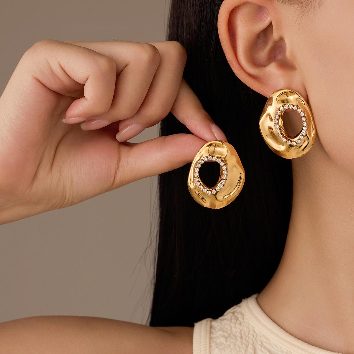 Pendientes de acero inoxidable de oro de 18 quilates de INS Cross-border, nuevos pendientes de circonita hueca exagerada para mujer, pendientes de alta gama de moda