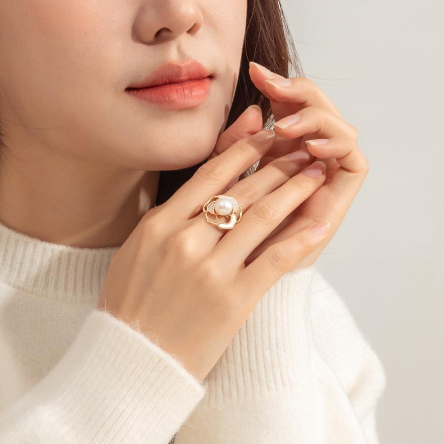 Hollow Camellia Necklace, Cutout Camellia Ring