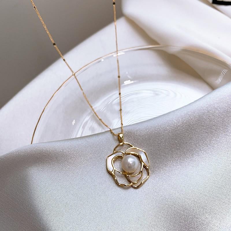 Collar de flores huecas con concha, estilo romántico, estilo camelia, cadena de clavícula, accesorios de diseño de nicho, novedad de 2024