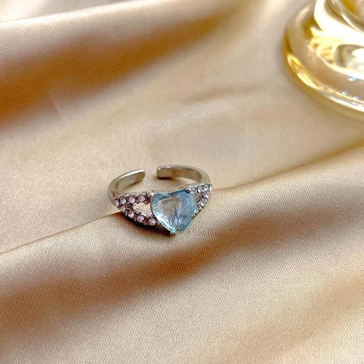Exquisito Anillo Azul de Amor Femenino Diseño Nicho Sentido Avanzado Anillo de Dedo de Comida Temperamento Combinable Anillo de Dedo de Comida Abierto Venta al por Mayor