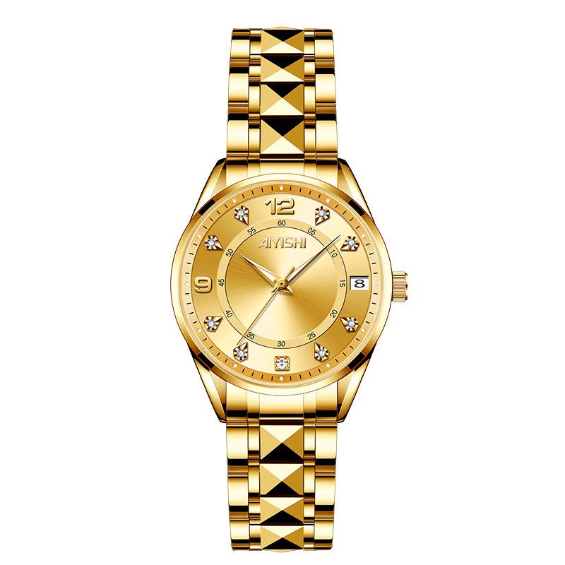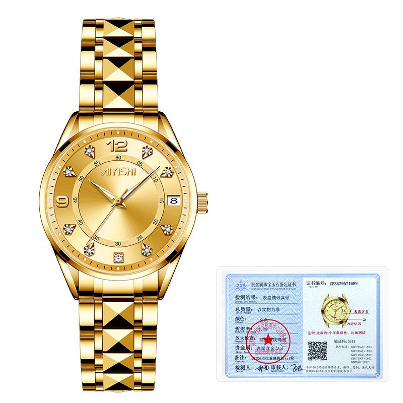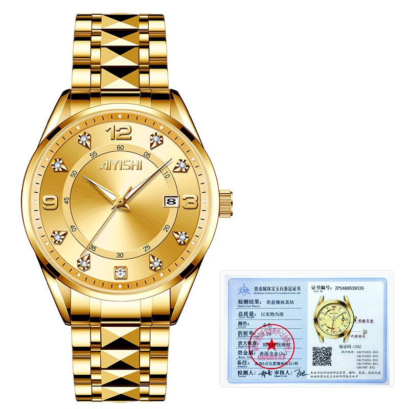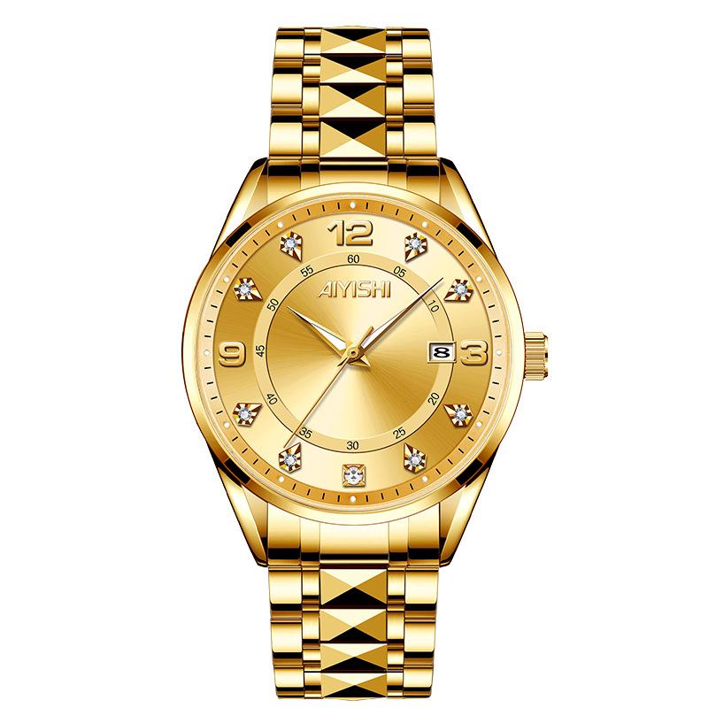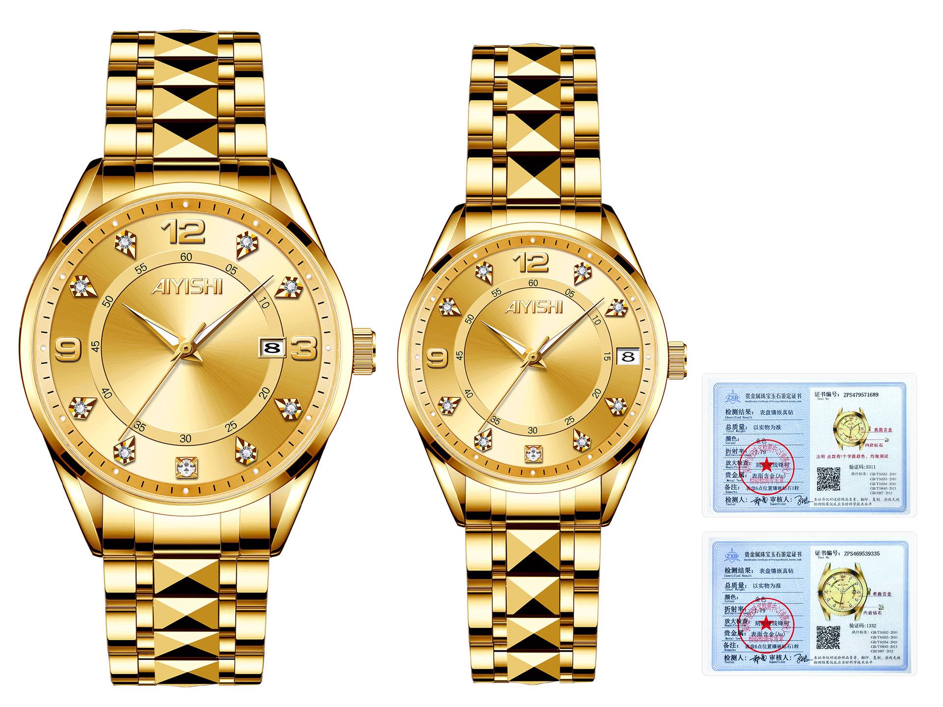 Aiyis Reloj de Pulsera de Acero para Pareja Suizo Calendario de Negocios Luminoso Impermeable Moderno 2056