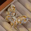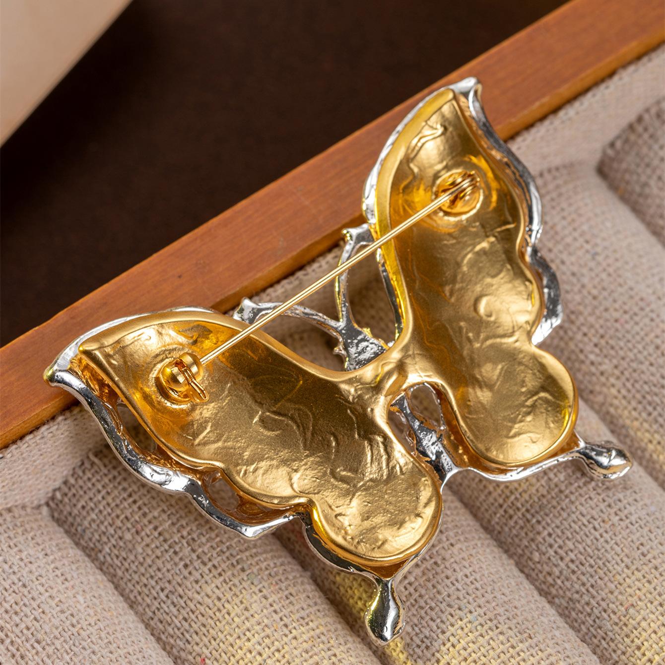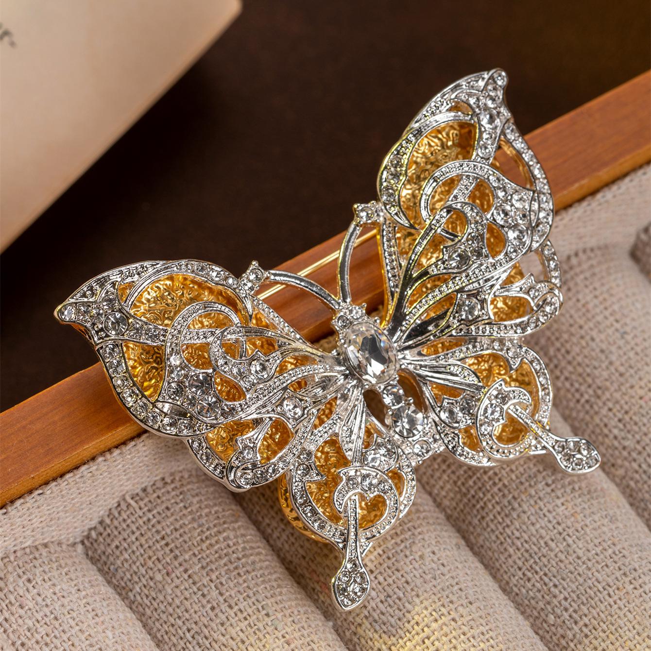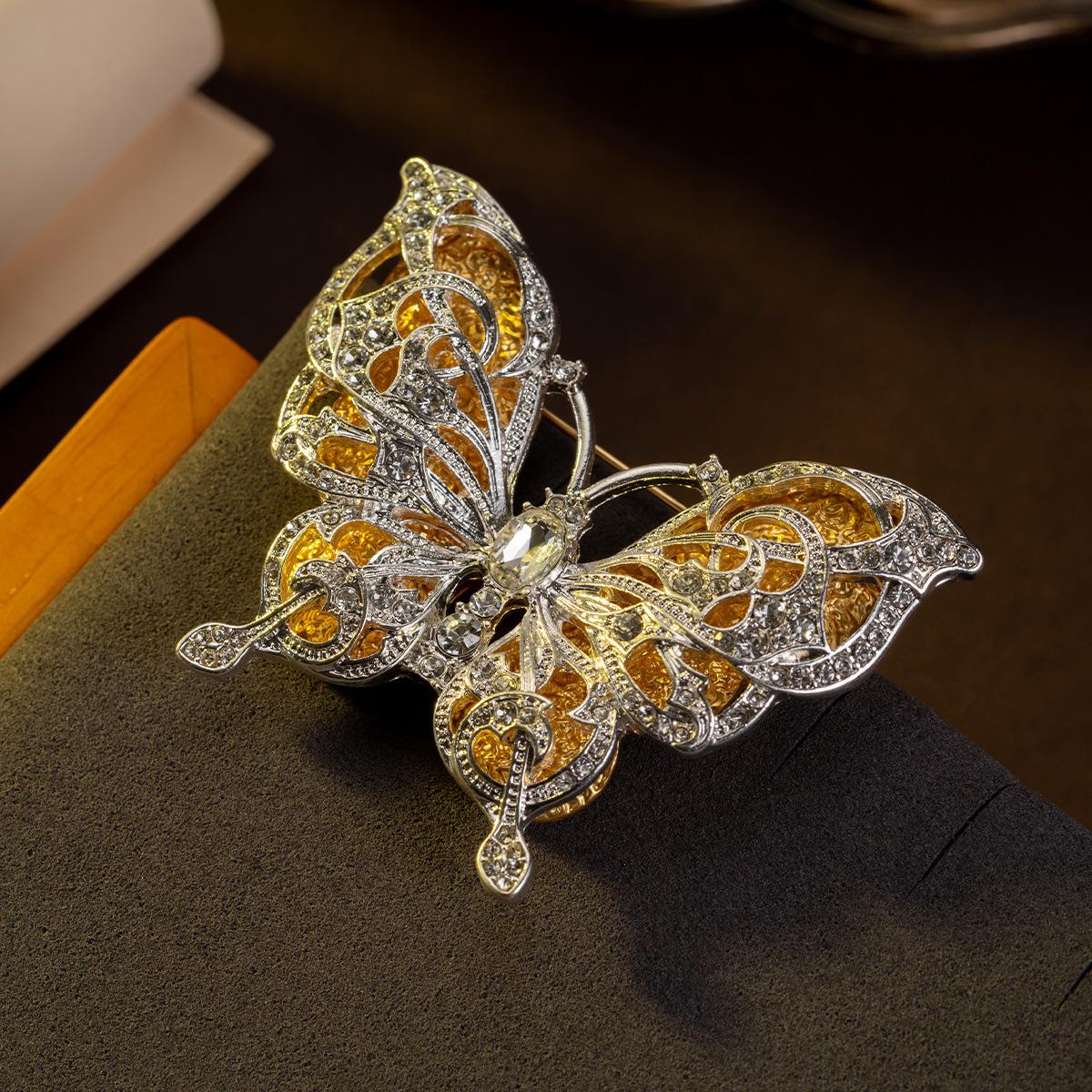 Broche de mariposa de doble capa con diamantes amarillos ahuecados de estilo medieval, broche vintage de alta costura que combina con todo.