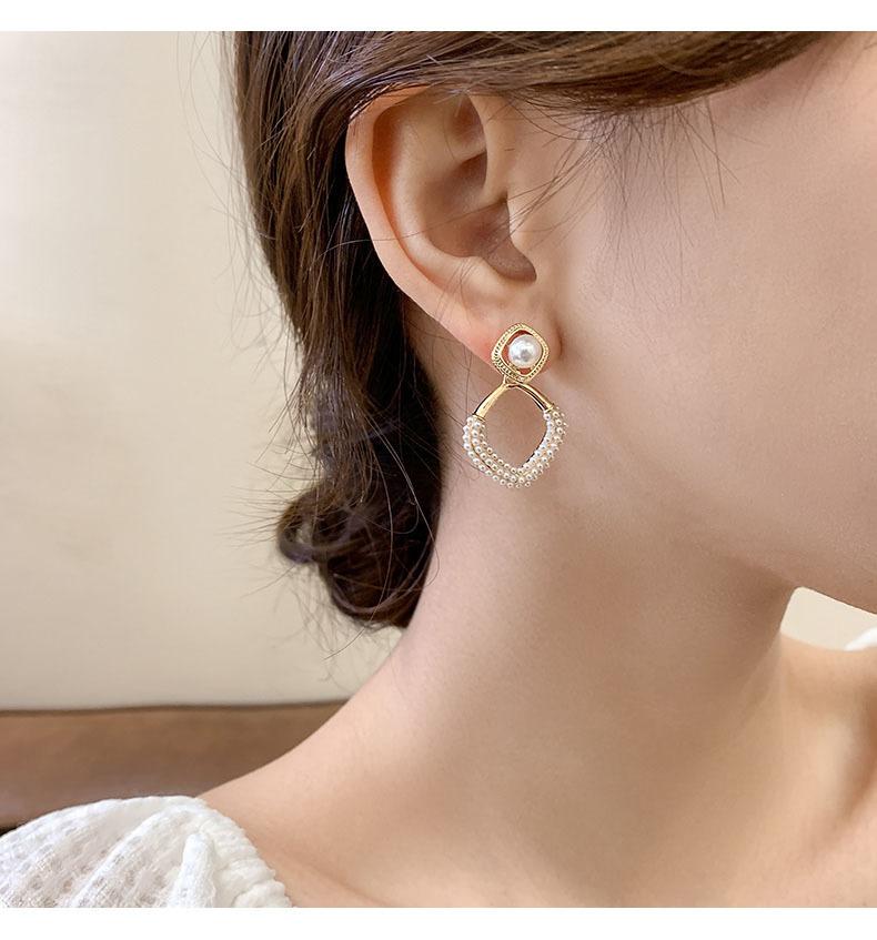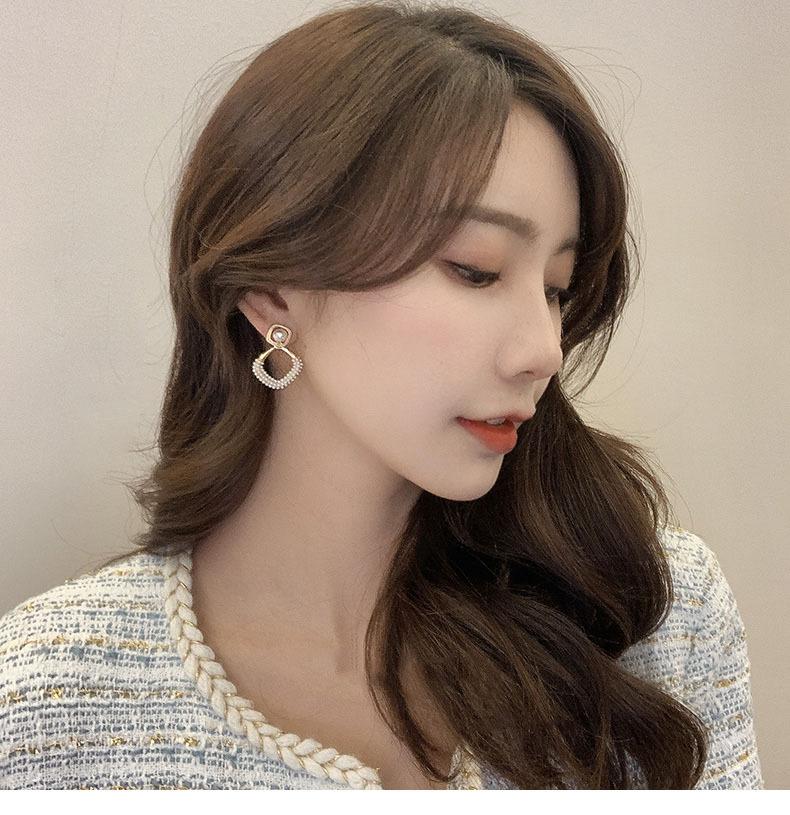 Pendientes de plata s925 con forma de aguja, diamantes y perlas, 2023. Elegantes y modernos, con un toque de distinción para mujer.