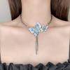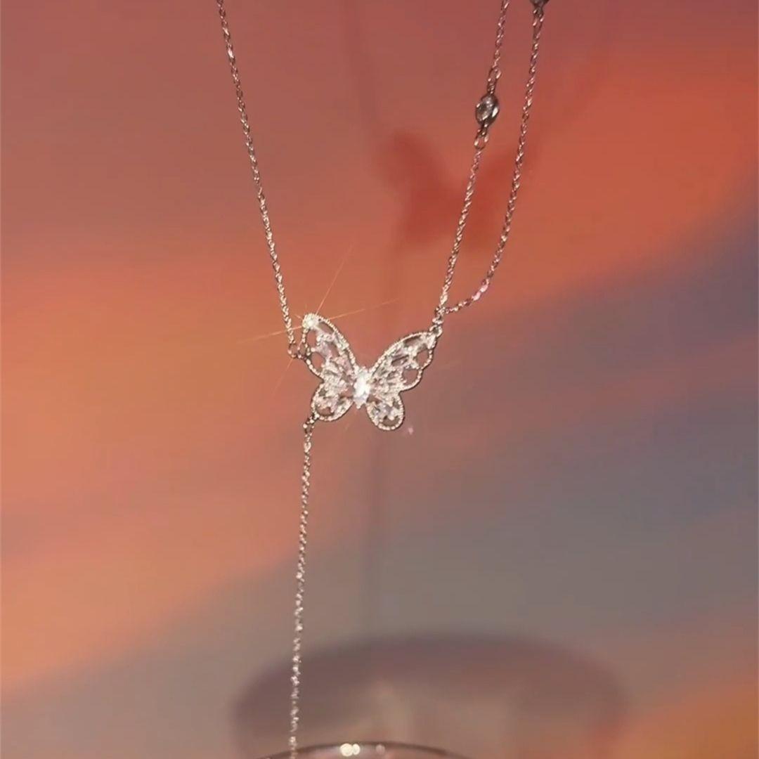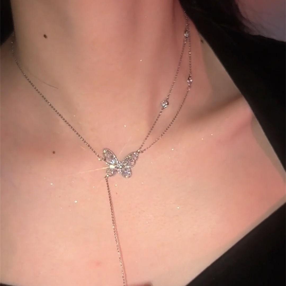 Collar elegante de lujo con borlas de circonita brillante y doble capa con diseño de mariposa para clavícula, collar distintivo que combina con todo para mujer.