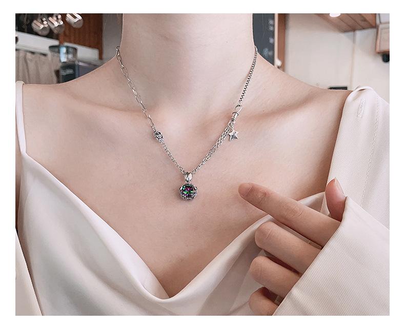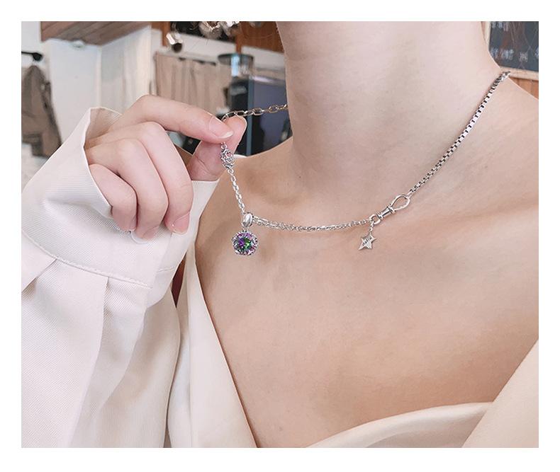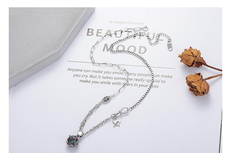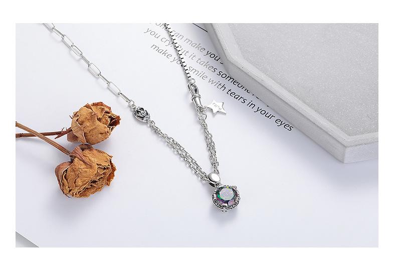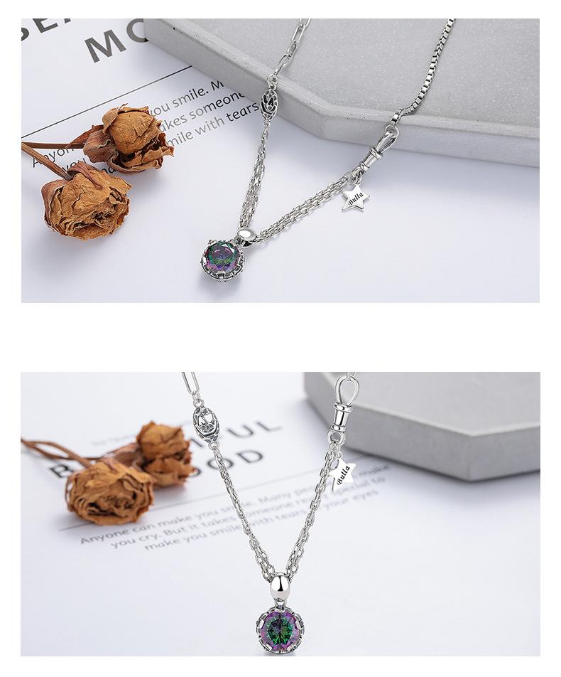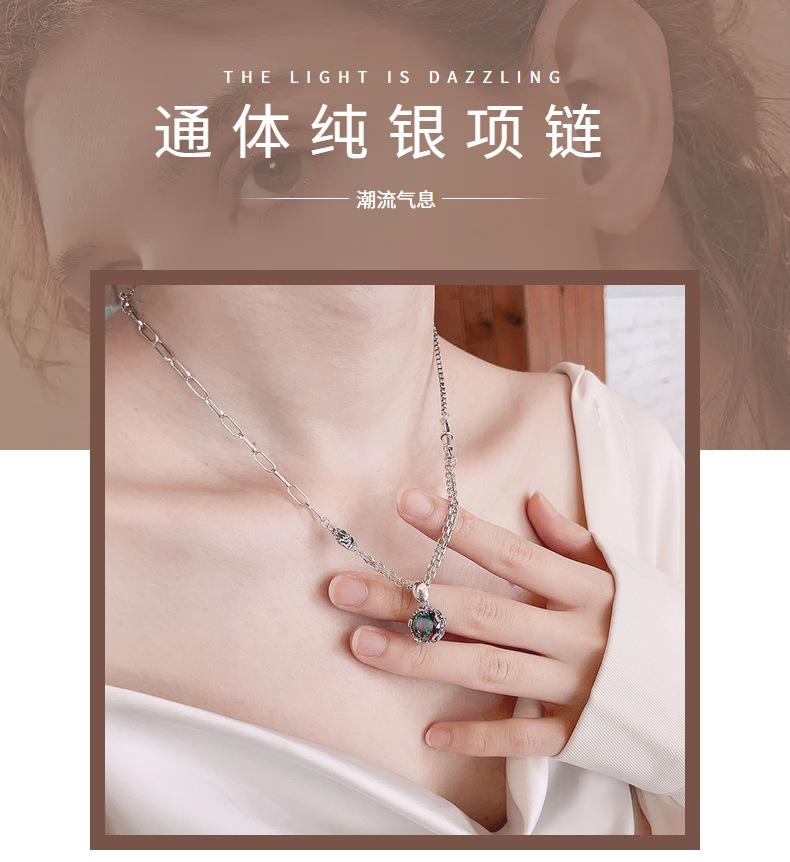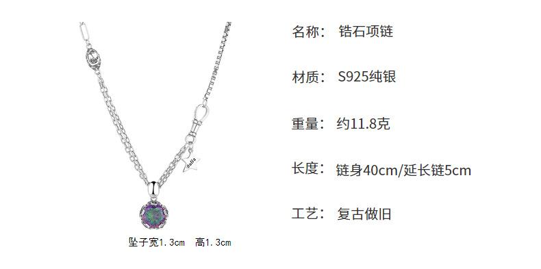 Chao Sheng s925 - Collar retro de plata de ley con costuras AB y circonitas de colores, estilo europeo y americano, combina con todo.