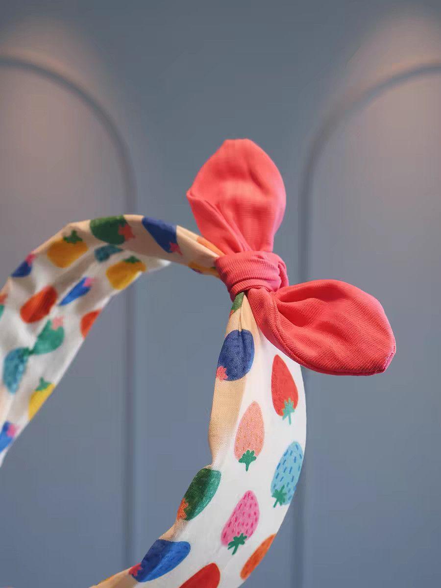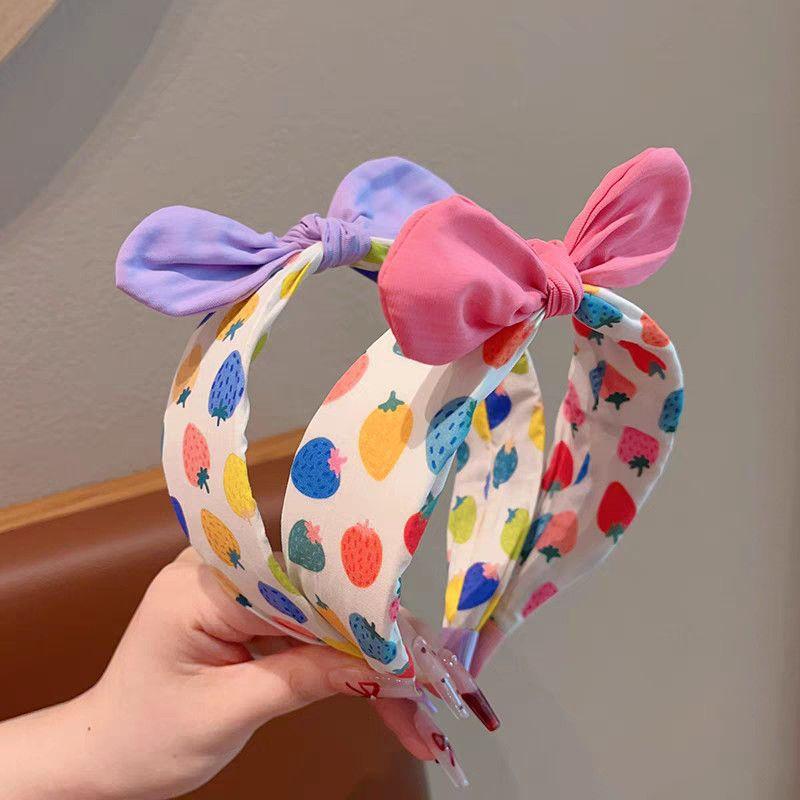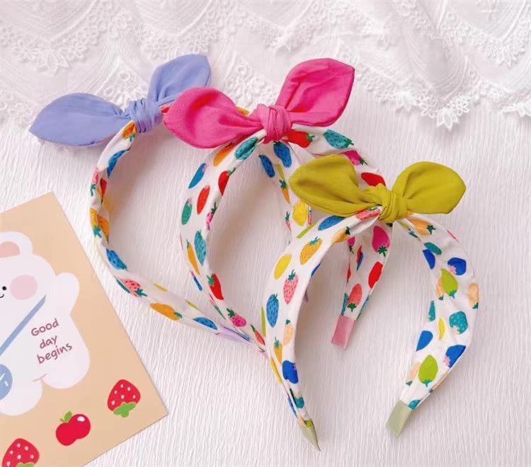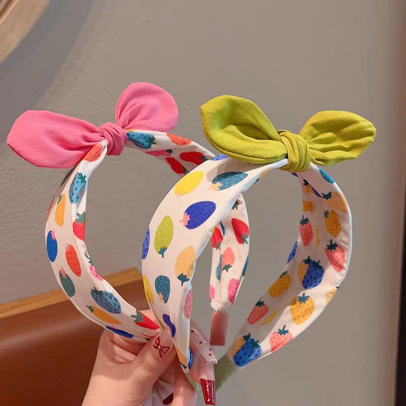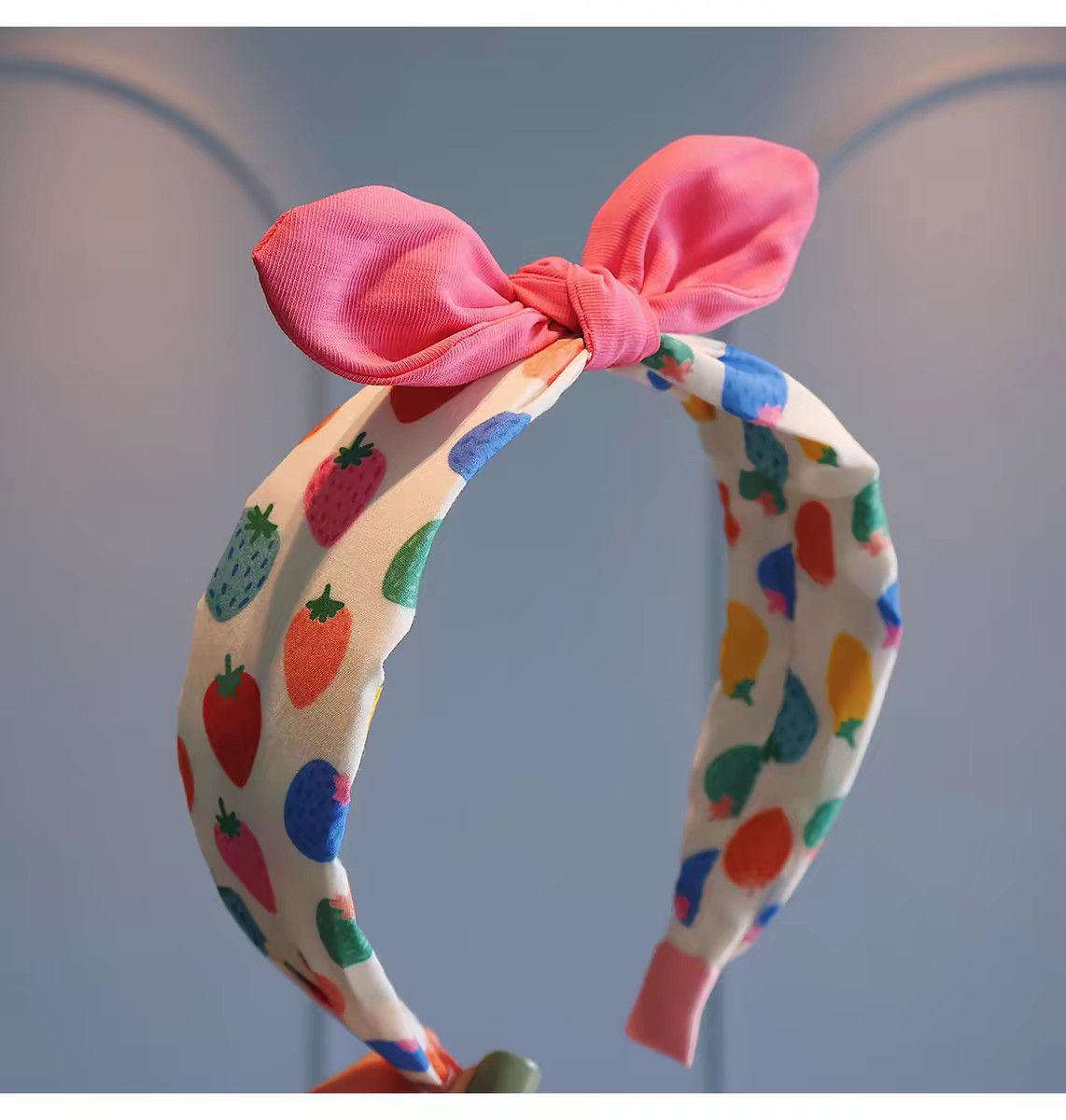 Diadema de Verano para Niñas Estilo Coreano Tridimensional Color Caramelo Orejas de Conejo Fresa Tela Pastoral Fresca Edición Ancha