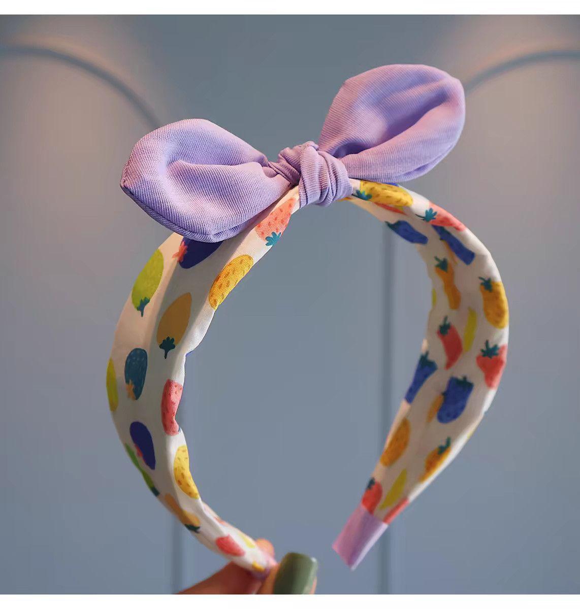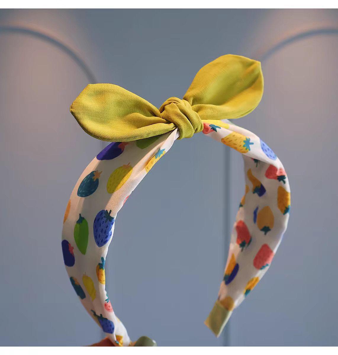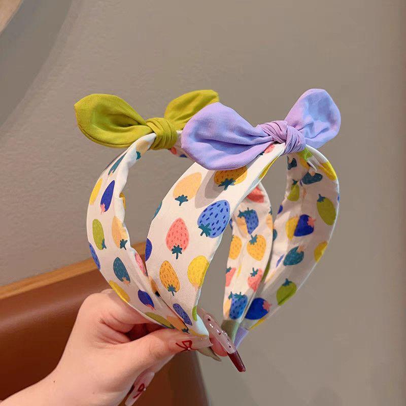 Diadema de Verano para Niñas Estilo Coreano Tridimensional Color Caramelo Orejas de Conejo Fresa Tela Pastoral Fresca Edición Ancha