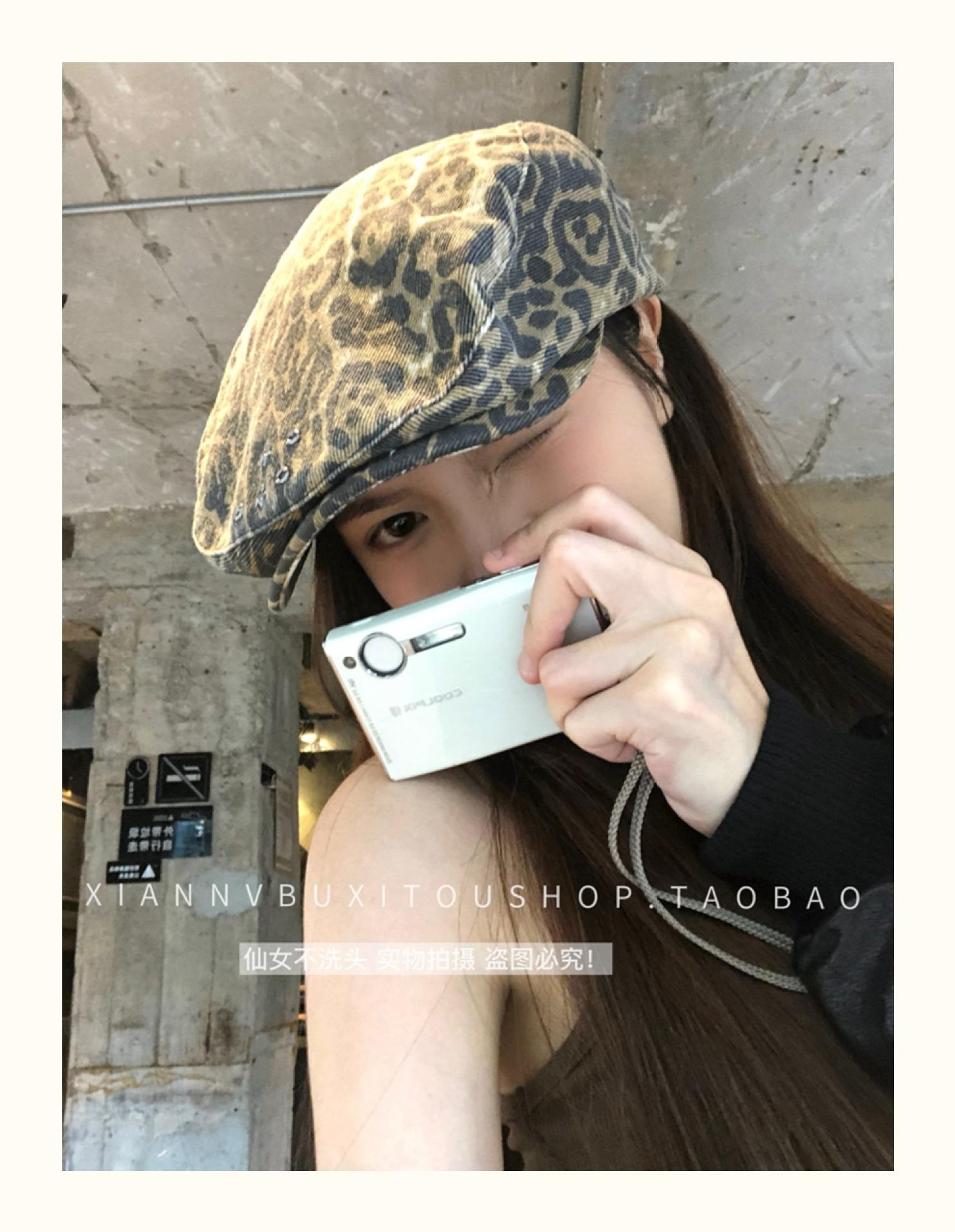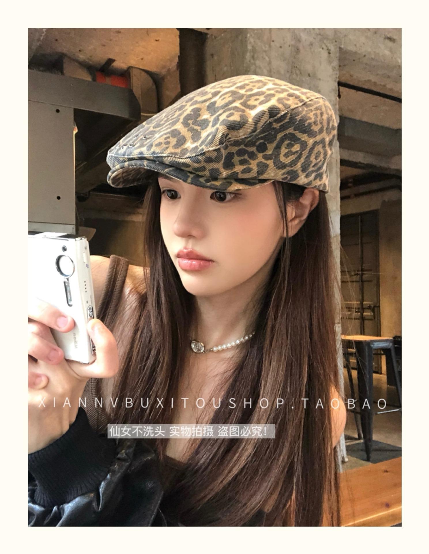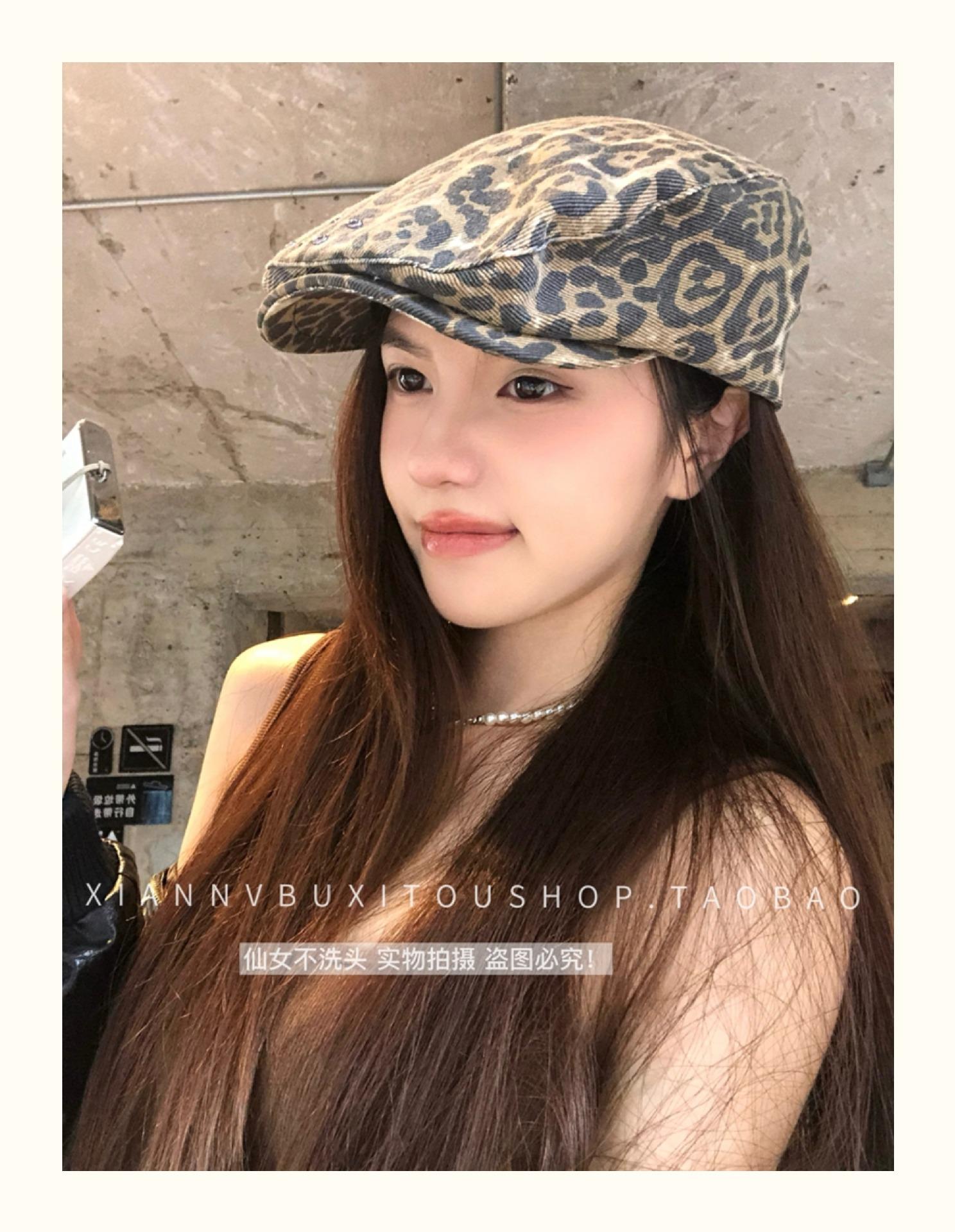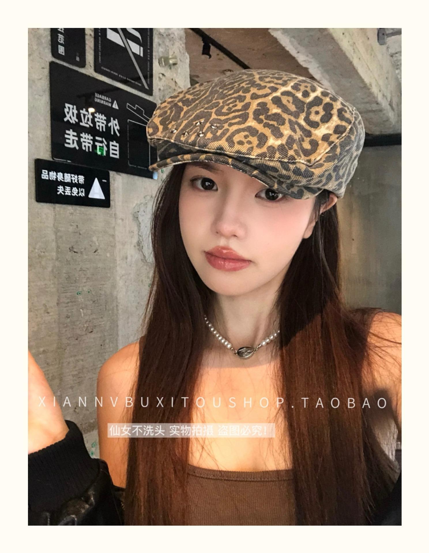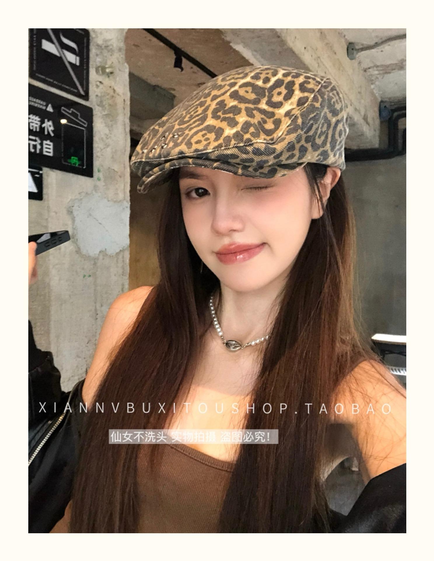 Y2K Cabeza Grande Ware Diseño Nicho Estampado Leopardo Retro Sombrero Avanzado Moda Femenina Estilo Americano Chica Caliente Showface Sombrero Pequeño Bailey