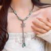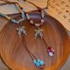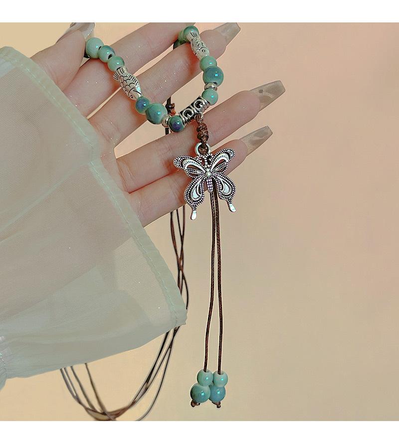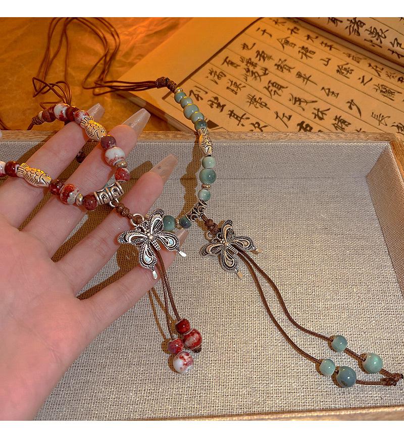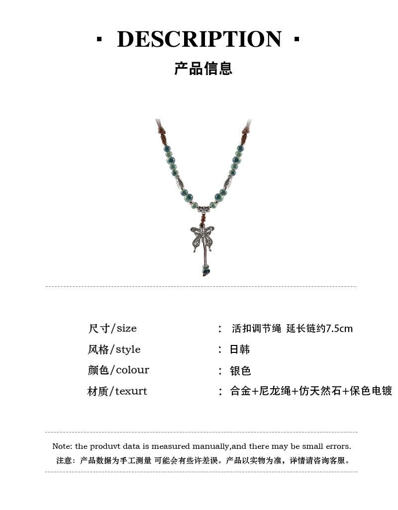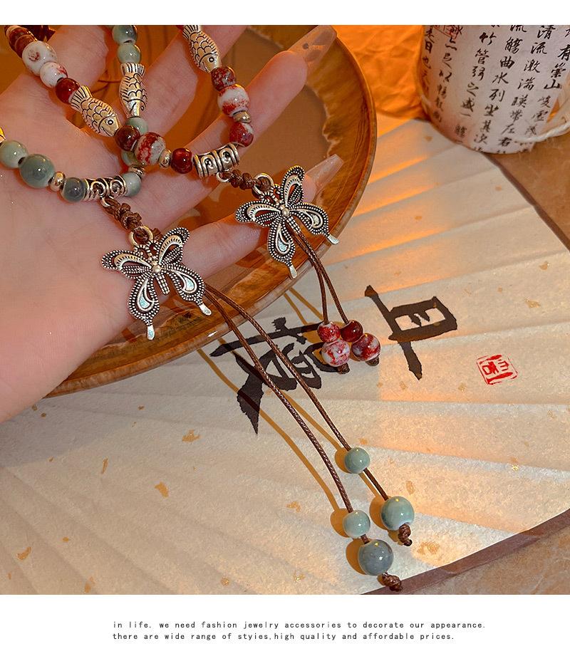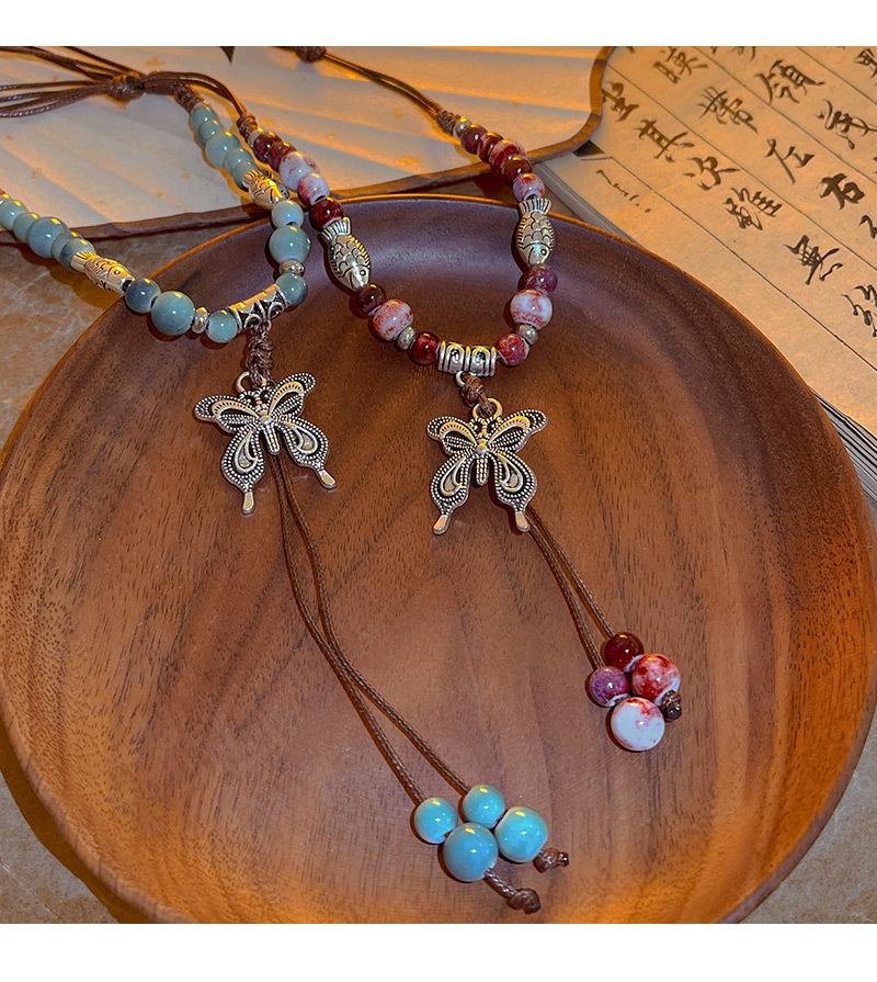 Collar de cuerda tejida con mariposas de cerámica y cuentas de colores, nuevo accesorio antiguo étnico chino, cadena de clavícula ligera de lujo de alta gama.