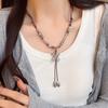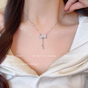 Collar coreano de lazo con borla larga y colgante de perla para mujer, circonio flash exquisito, celebridad de internet de alta gama, collar de cadena para clavícula