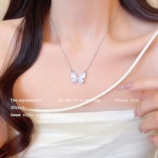 Collar de mariposa de cristal de diamante degradado azul para mujer, dulce, cool, simple, cadena para clavícula de chica hot, accesorios al por mayor de alta gama