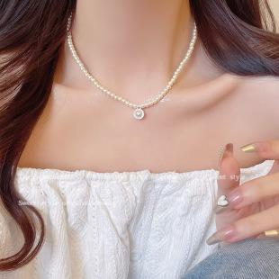 Collar de perlas retro coreano para mujer, cadena de clavícula simple de nicho de alta gama con incrustaciones de diamantes, accesorios de personalidad populares en línea