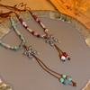 Collar de cuerda trenzada con mariposas de cerámica con cuentas de colores, nuevo estilo étnico chino antiguo, accesorios ligeros de lujo, cadena de clavícula de alta gama