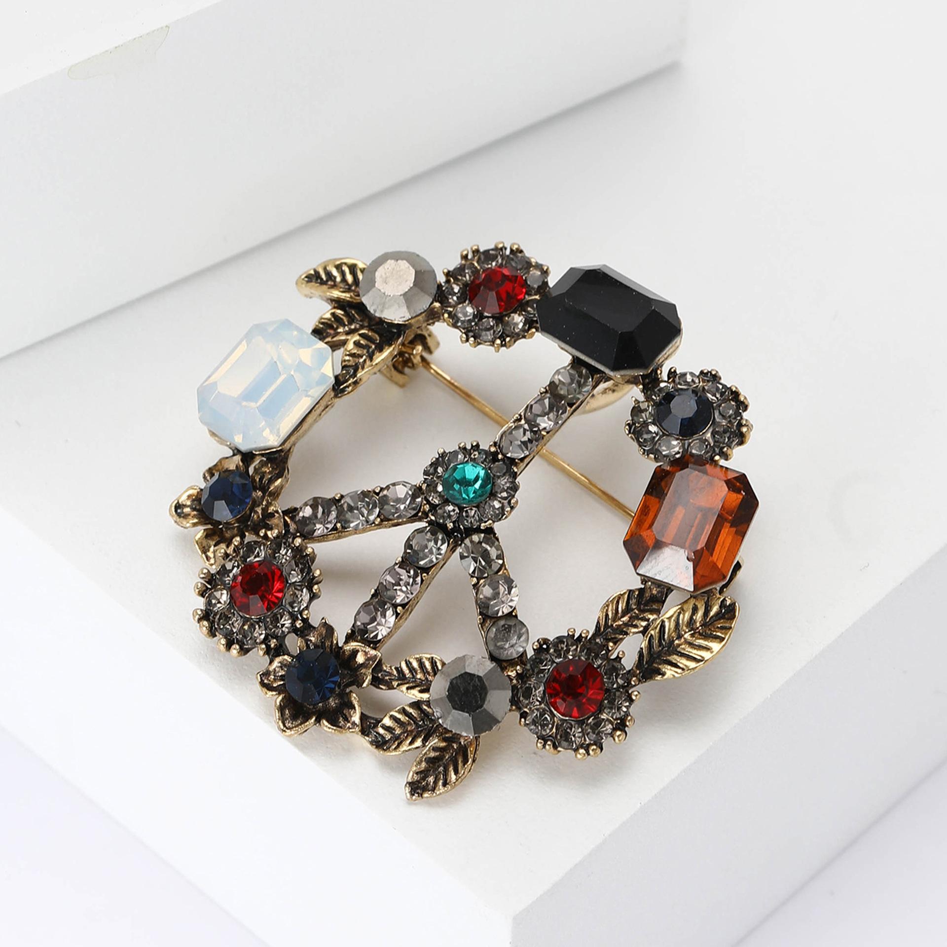 Nuevo Pin Insignia de la Paz Barroco Retro de Aleación con Pedrería Exquisito de Alta Gama para Ropa de Hombre y Mujer