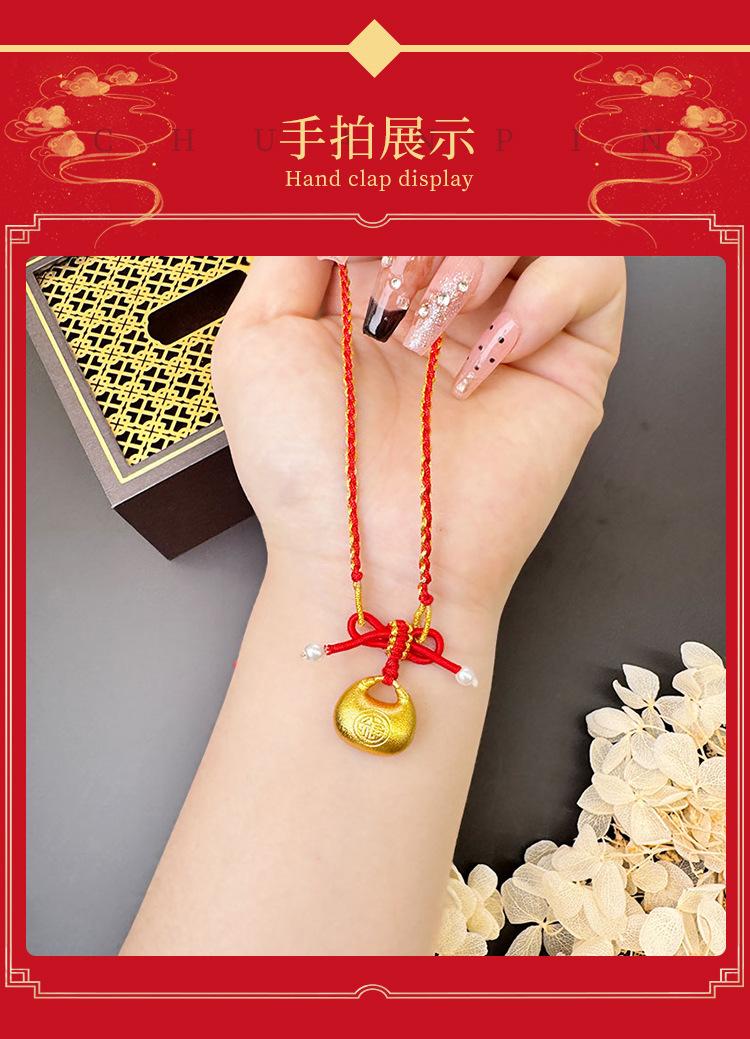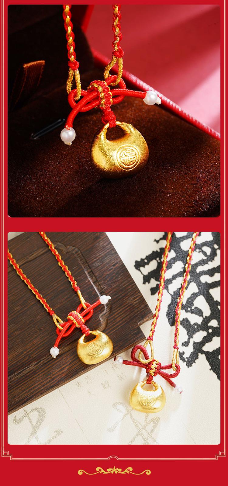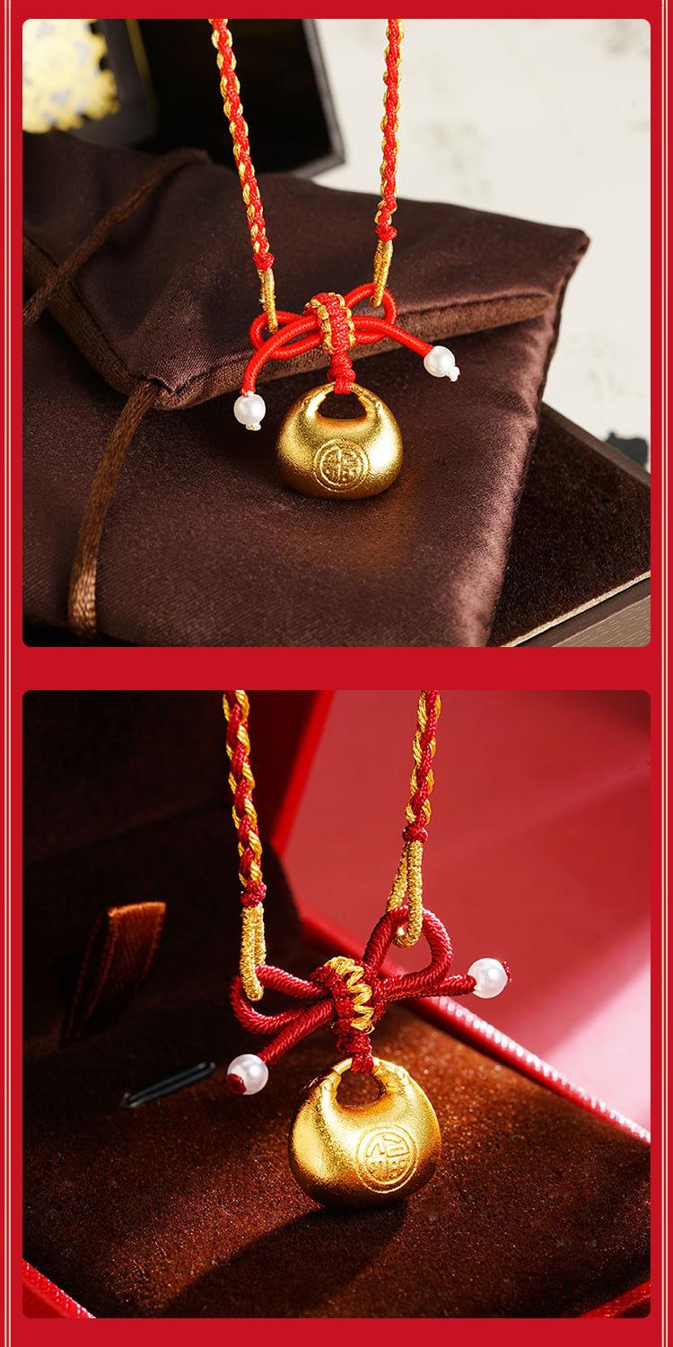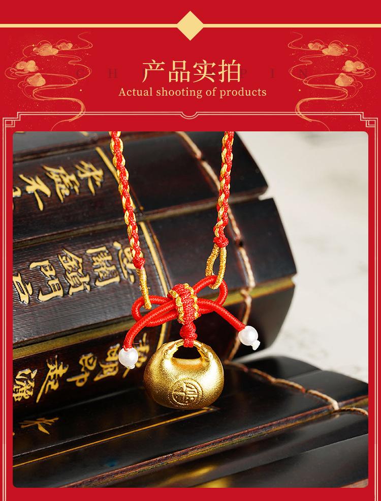 Explosivo hecho a mano antiguo francés oro arena pequeño fu gordo lazo de princesa grande colgante de cuerda roja collar moda combinable