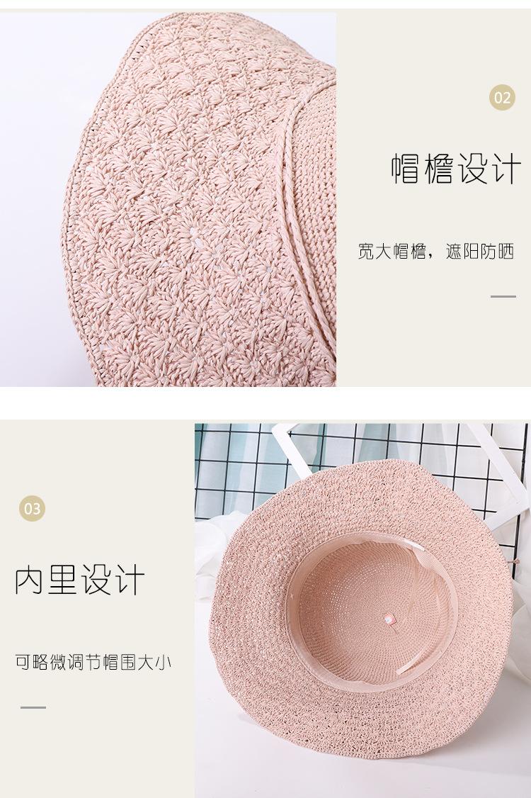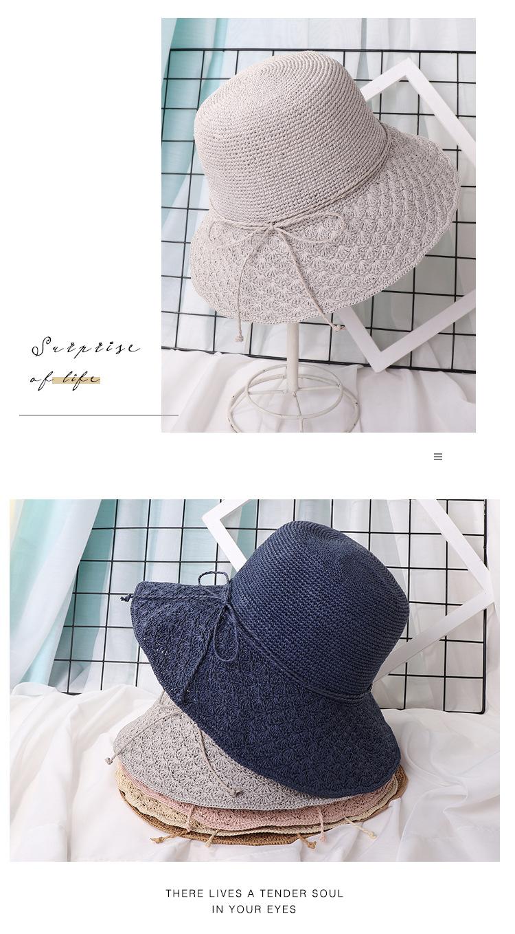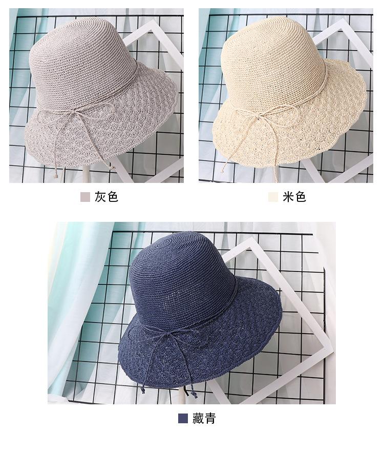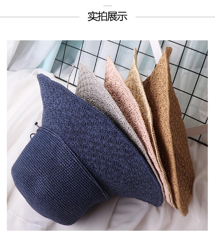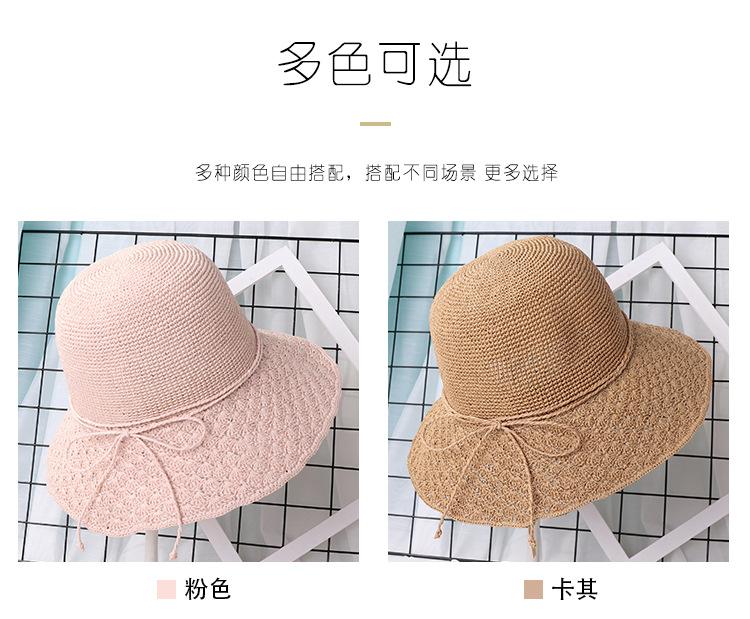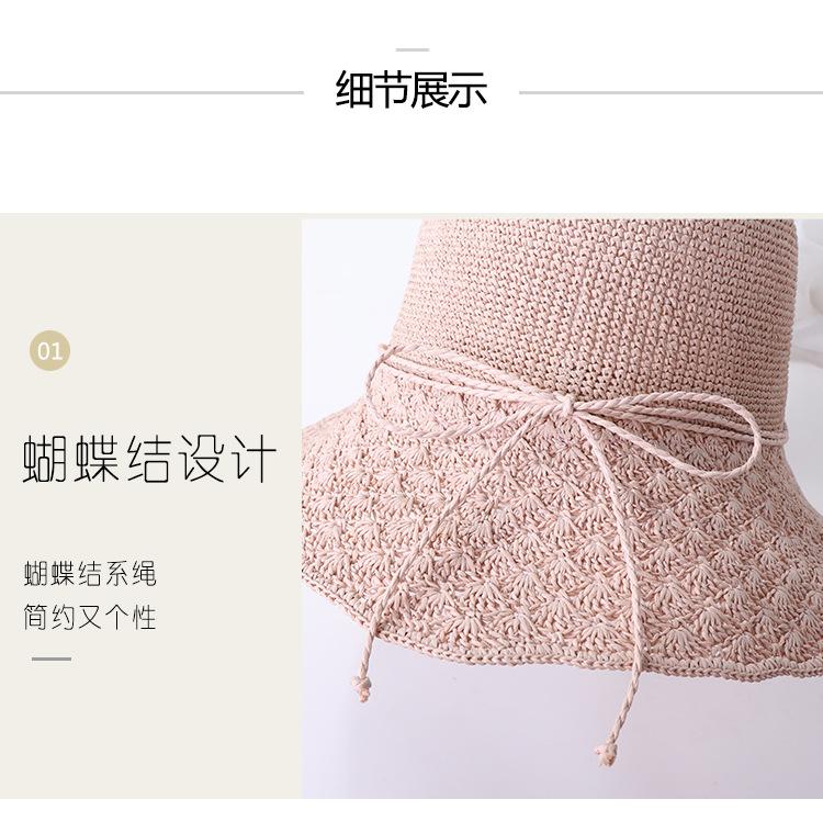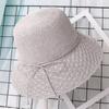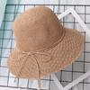 Sombrero de paja para mujer, estilo coreano fresco de verano, para vacaciones en la playa, con lazo, protector solar, para playa
