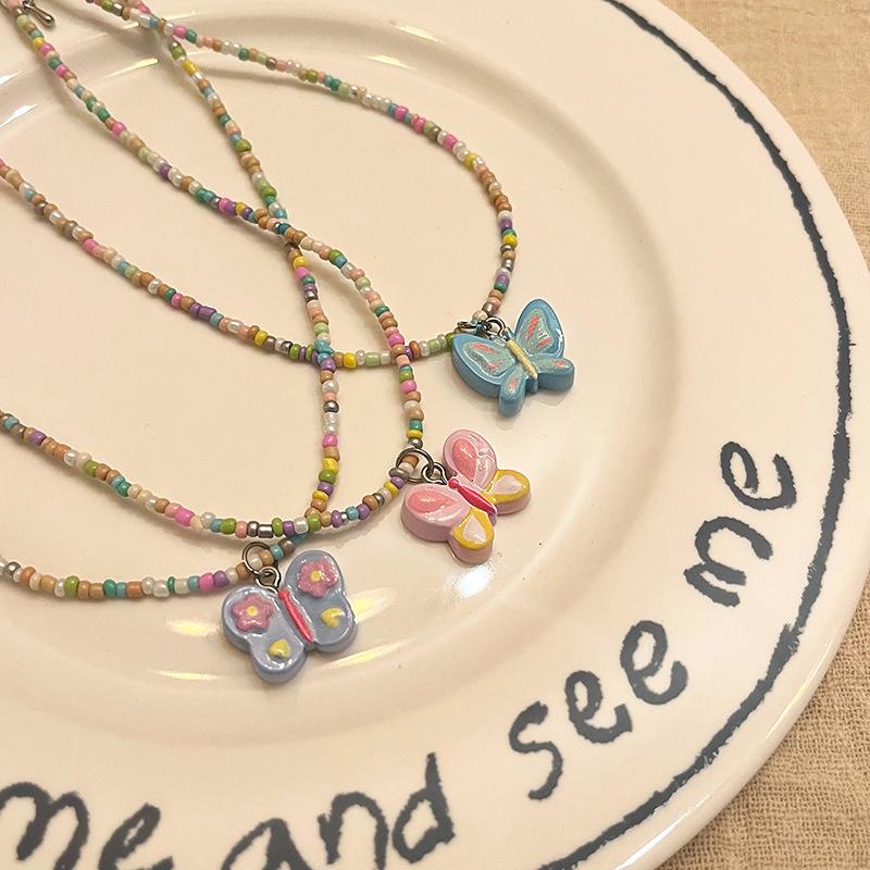 Collar de Mariposa con Cuentas de Color Millennium Spice Girl para Mujer, Diseño de Alto Grado, Nicho, Dulce, Cool, Cadena para Clavícula