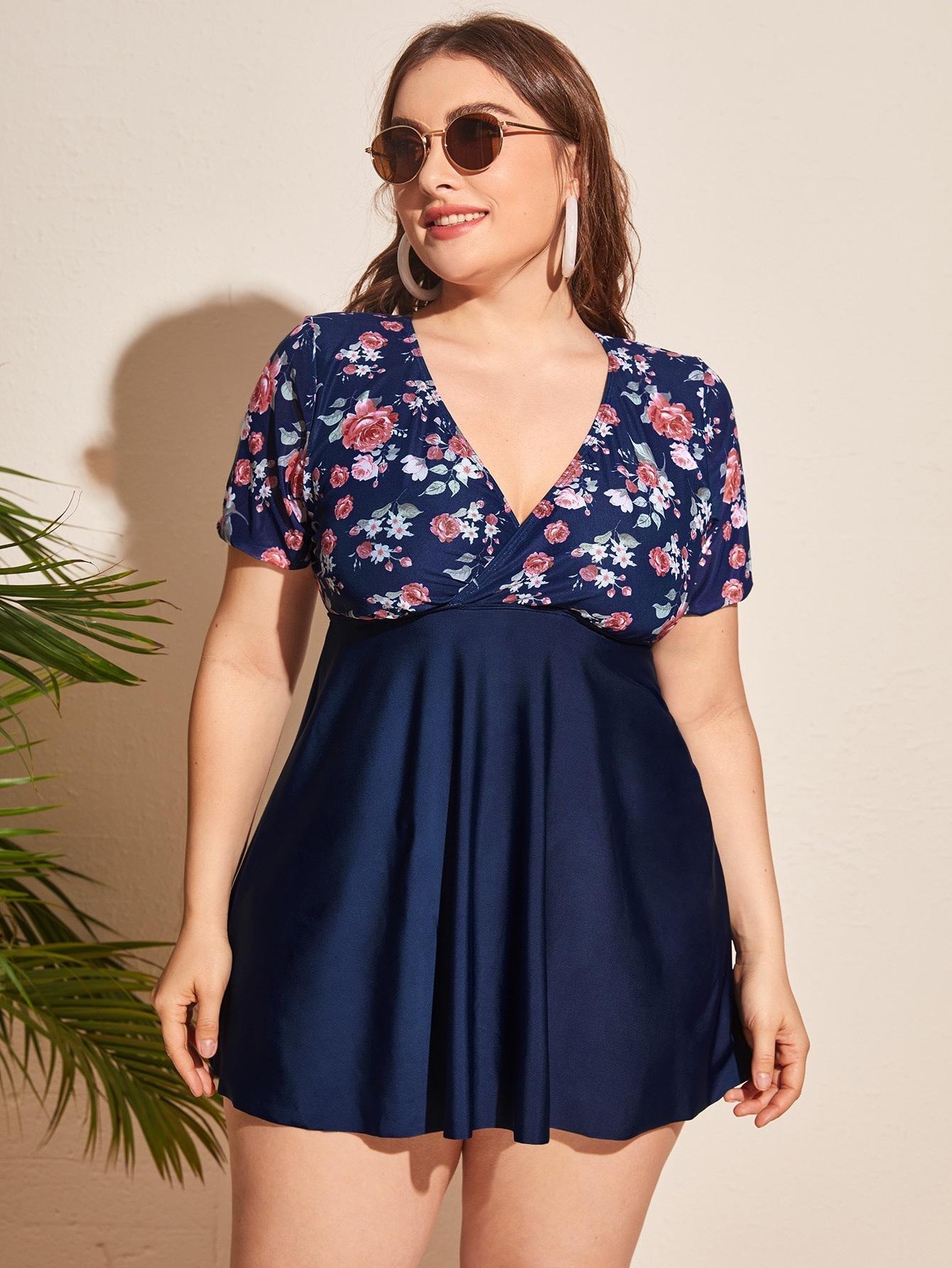Traje de baño de una pieza con falda de talla grande nuevo europeo y americano 2023, estampado digital, conservador para cubrir el vientre, traje de baño transfronterizo de Amazon