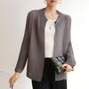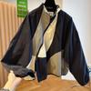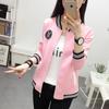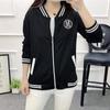 Chaqueta tipo cárdigan de manga larga con cremallera y letras bordadas finas de estilo coreano para mujer, holgada, de talla grande, para otoño e invierno.