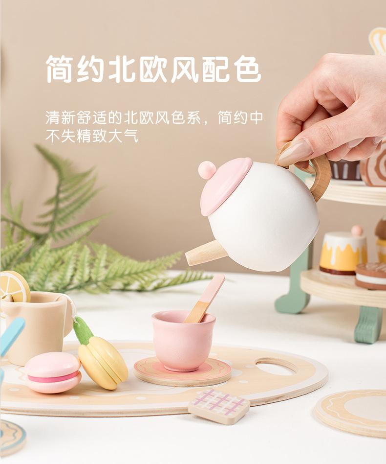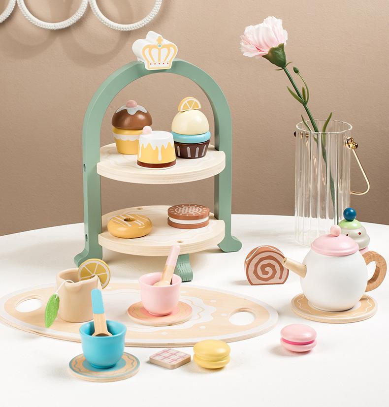 Té de la Tarde Corona Transfronterizo Juguetes de Madera Educativos para Niños Cocina Soporte para Postres de Doble Capa Juego de Té Juguetes Interactivos para Padres e Hijos