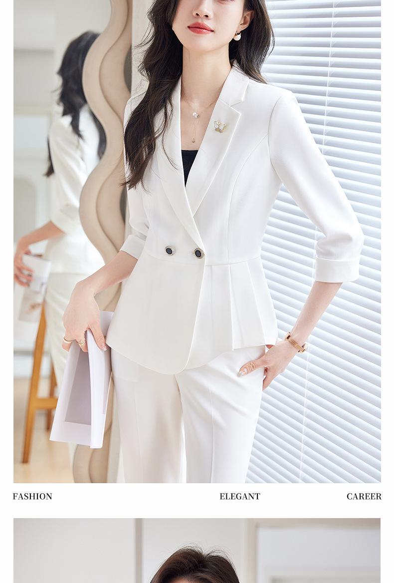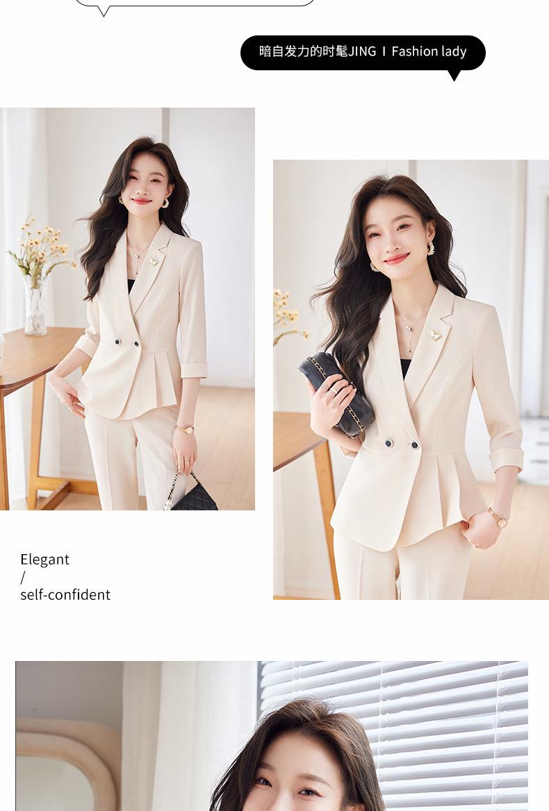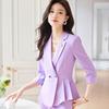 2024 Primavera y otoño nuevo púrpura 3/4 manga profesional simple pequeño traje cuello chaqueta pantalones de mujer traje de dos piezas