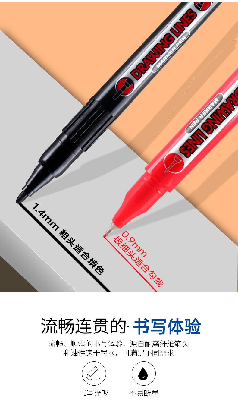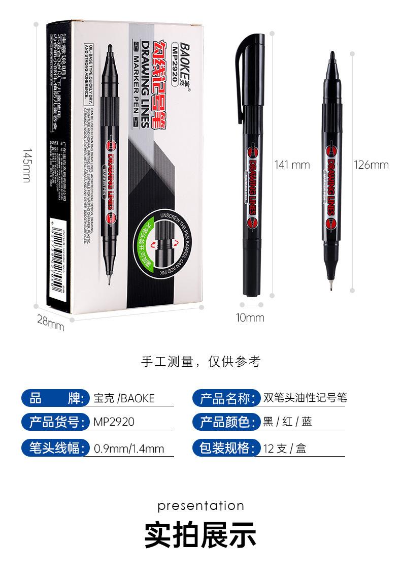 Marcador de Doble Punta Baoke Mp2920 Pluma de Línea de Gancho Arte Especial Estudiante de Primaria Pintura Negro Aceitoso Grosor