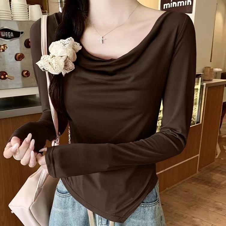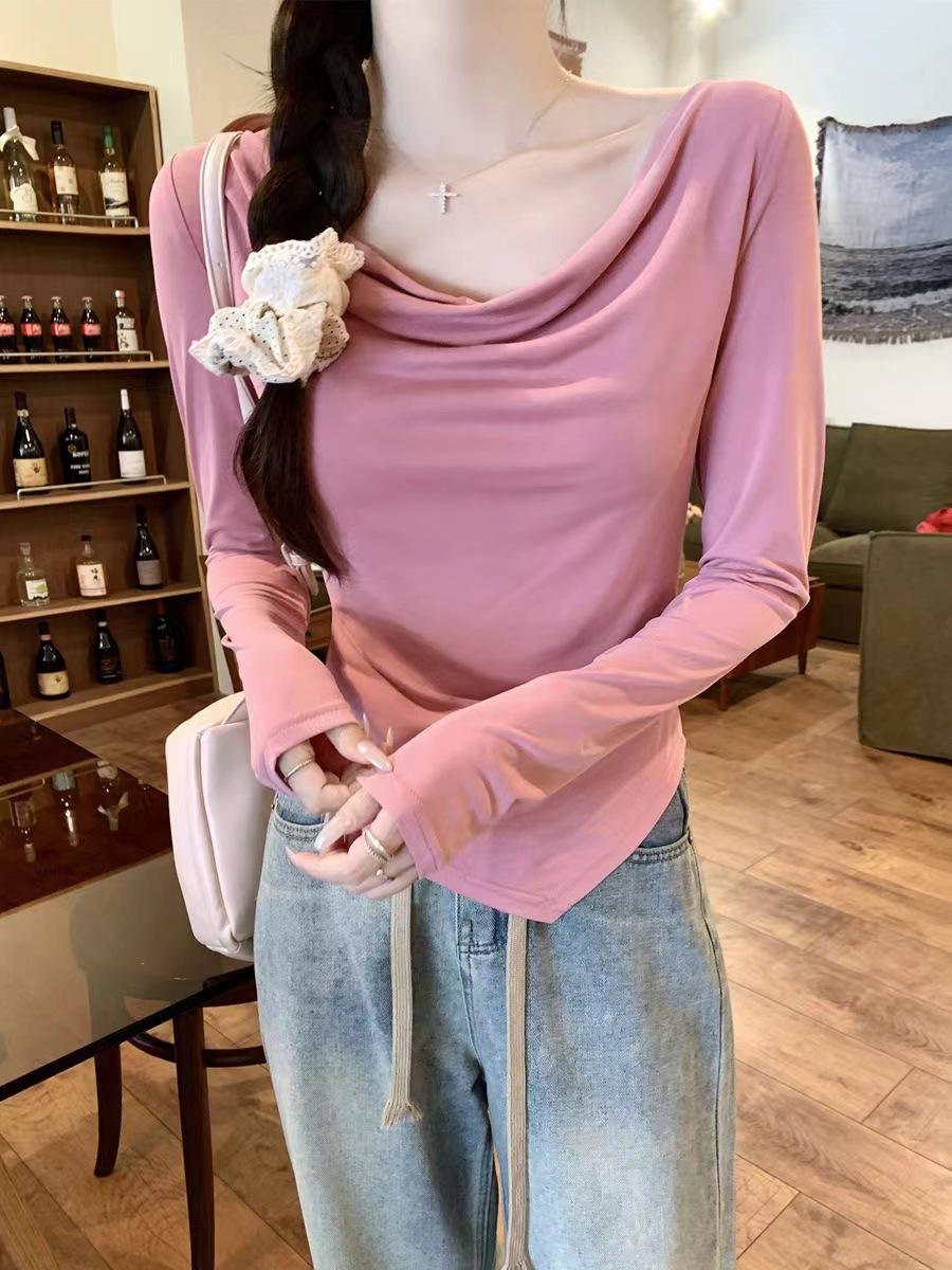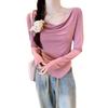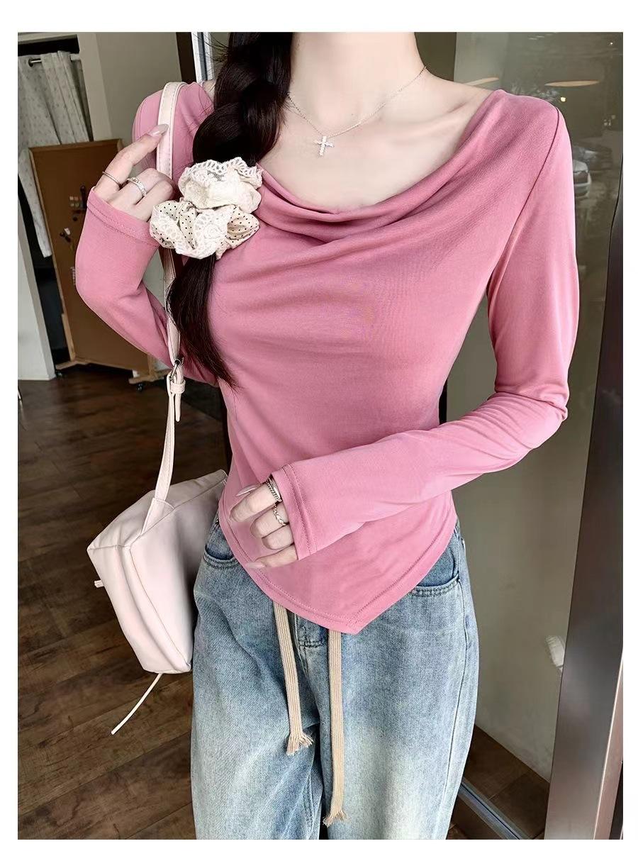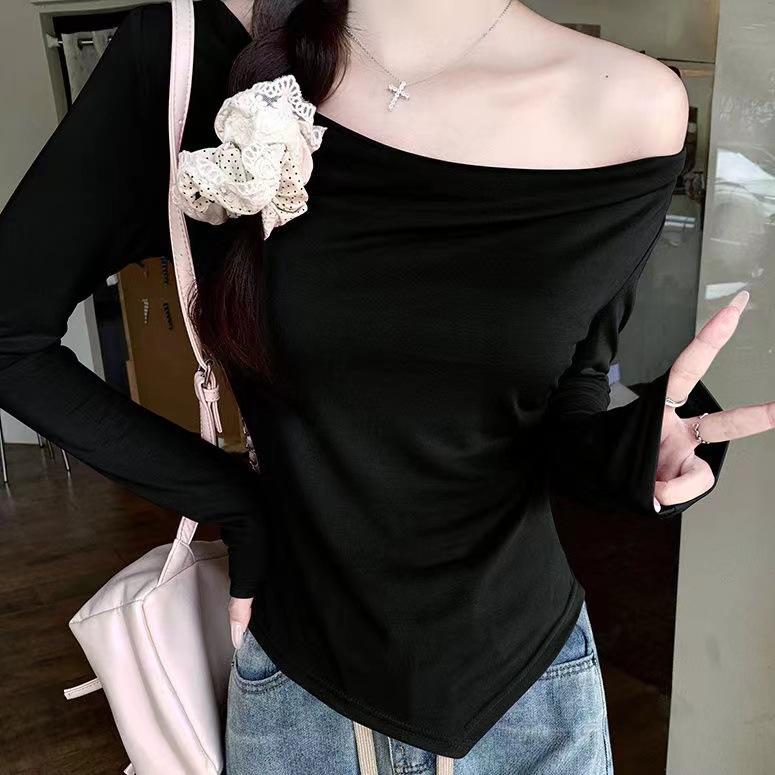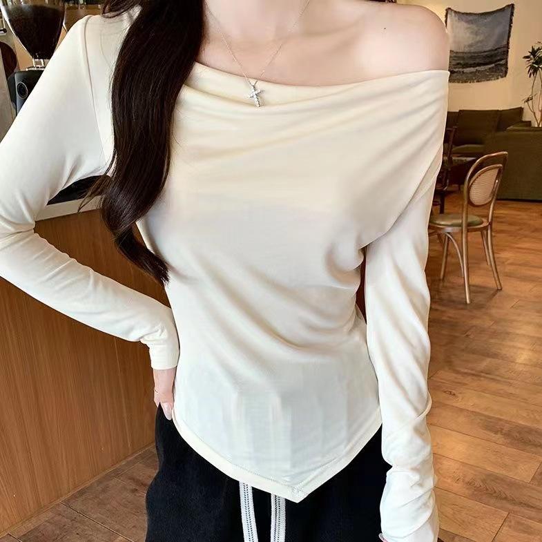 Camiseta de manga larga con cuello irregular de un solo carácter Spice Girl Otoño Nuevo diseño Base Slim-fit Top adelgazante Combinación completa