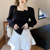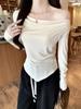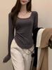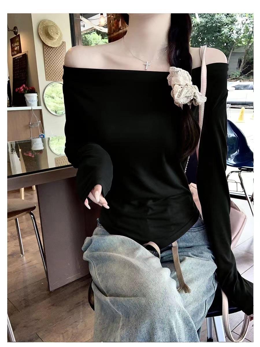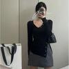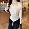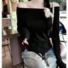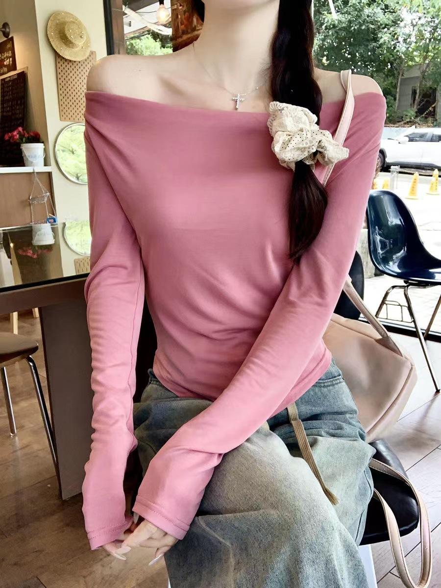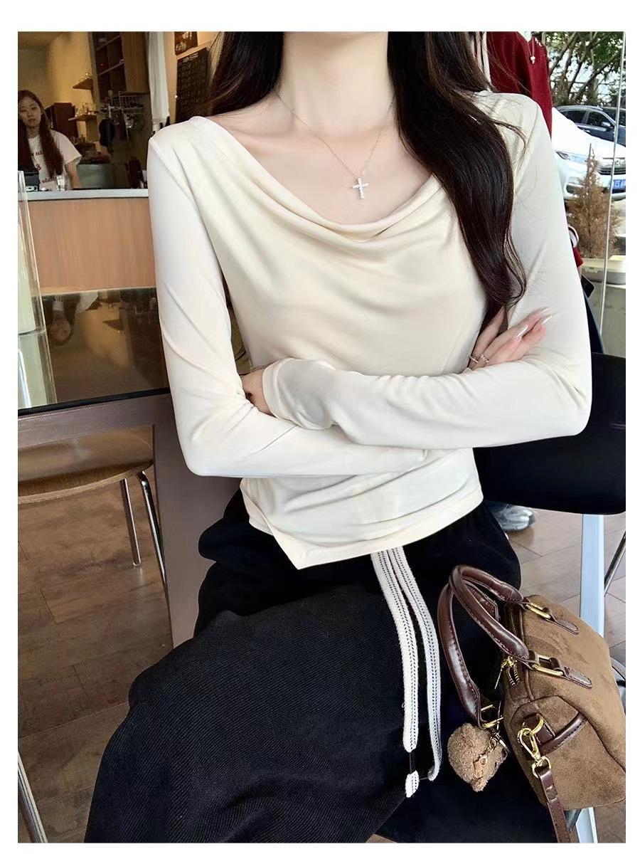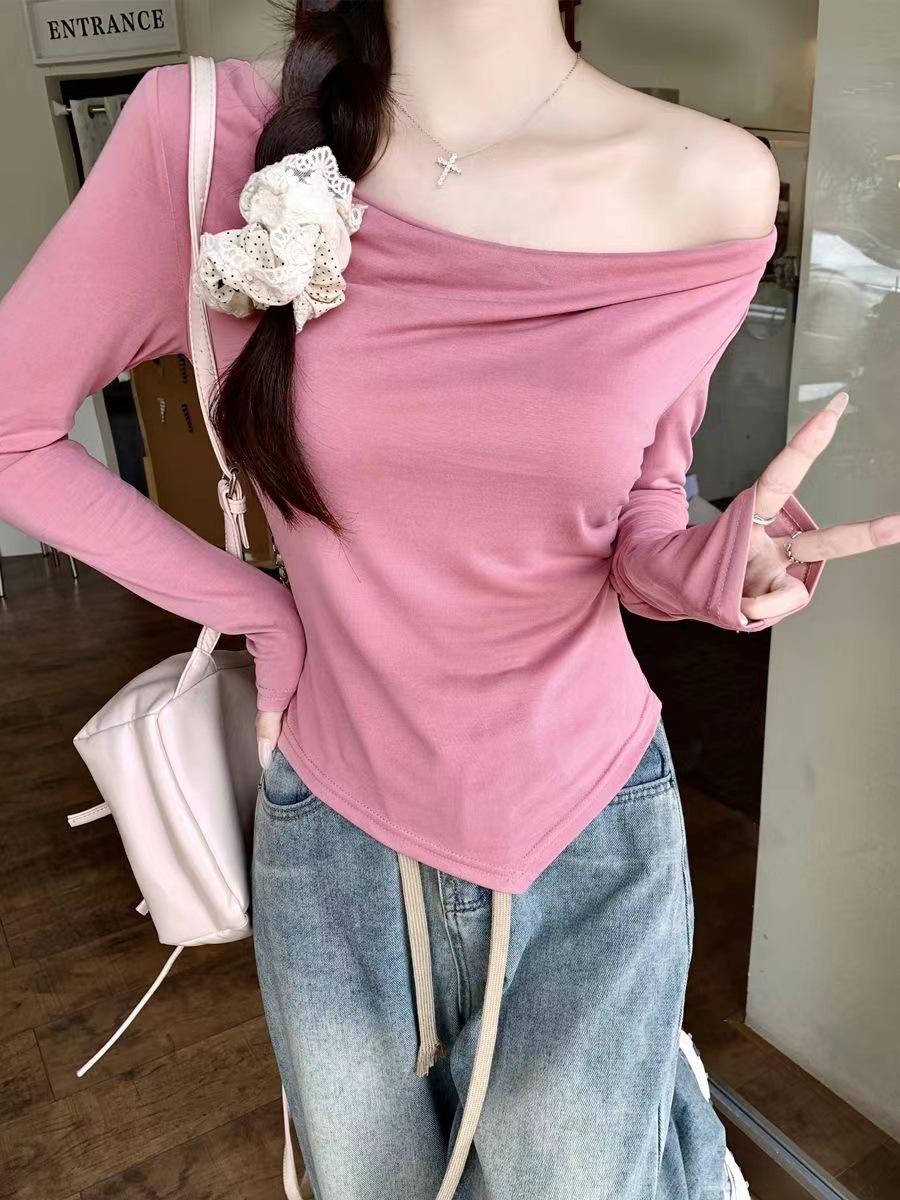 Camiseta de manga larga con cuello irregular de un solo carácter Spice Girl Otoño Nuevo diseño Base Slim-fit Top adelgazante Combinación completa