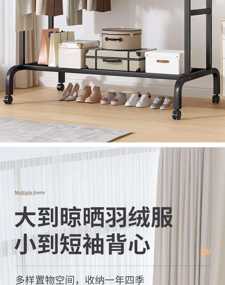 ☆★Upgraded multi-pole - black 120cm long - with wheels [can hold 15 pairs of shoes + 120 clothes]☆★