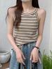 Compra Chaleco de verano vintage a rayas con cuello para mujer, diseño de chica atractiva, cintura alta, corte entallado, sin mangas al por mayor en Joom.pro