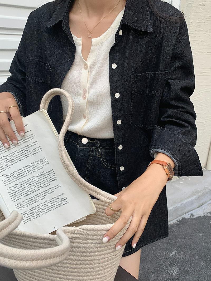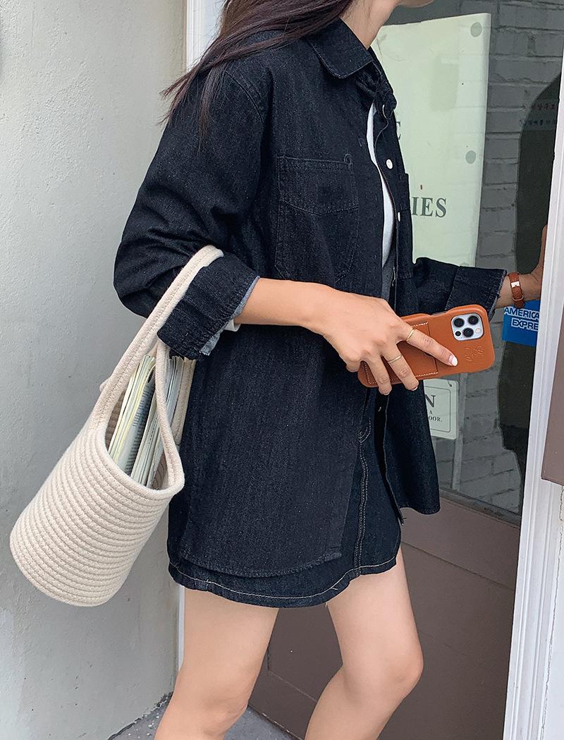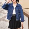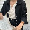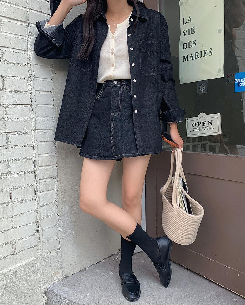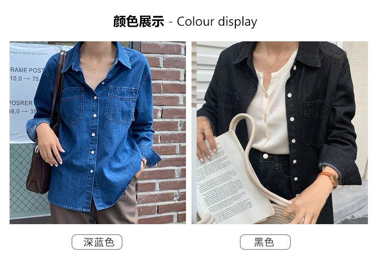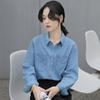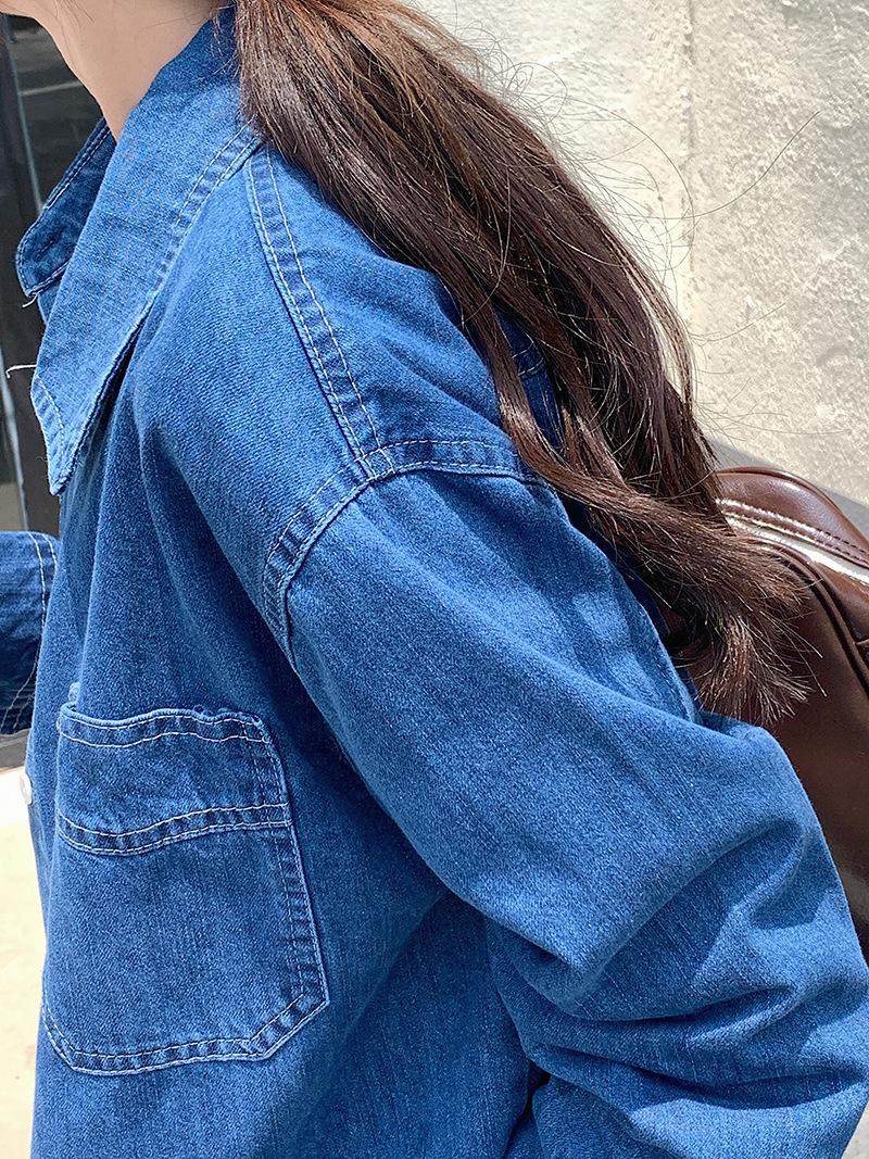 Camisa vaquera con solapa azul oscuro de tiro real, abrigo de camisa de mujer, primavera y otoño 2024, nueva prenda exterior, top holgado 2024