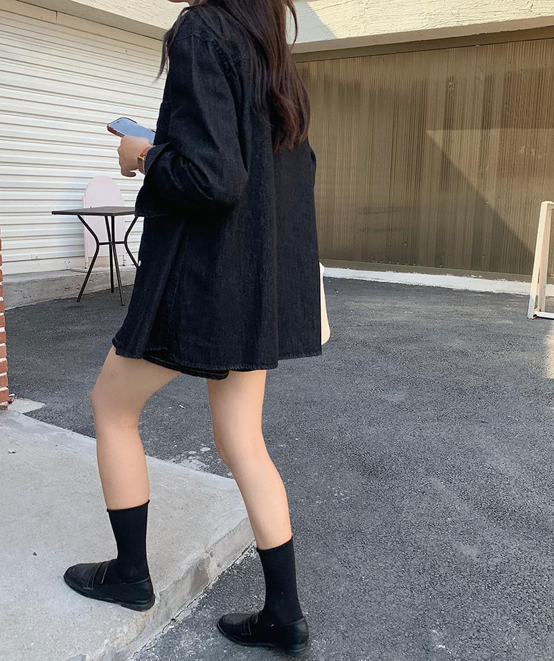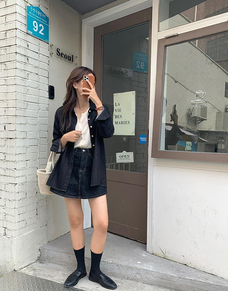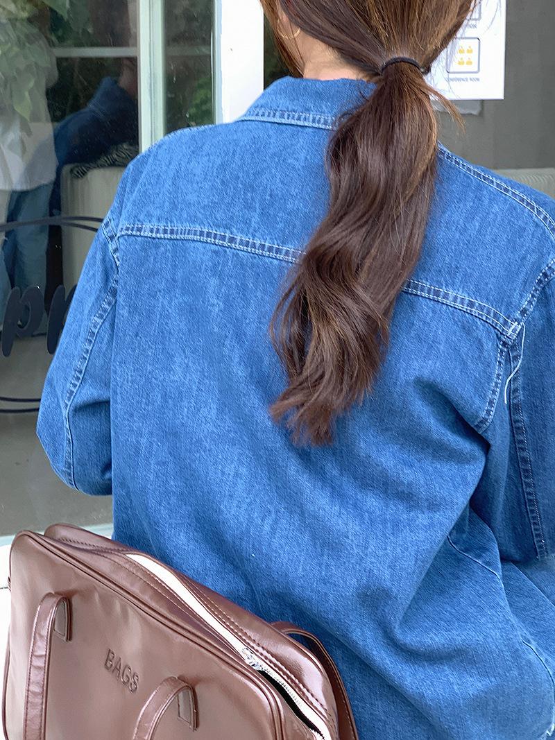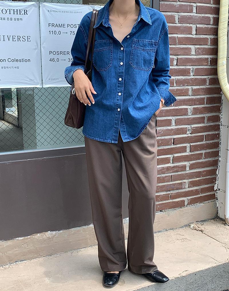 Camisa vaquera con solapa azul oscuro de tiro real, abrigo de camisa de mujer, primavera y otoño 2024, nueva prenda exterior, top holgado 2024