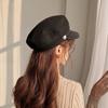 Boina negra de otoño e invierno, estilo británico retro, combinable con todo, de lana azul marino, gorra octogonal roja de red para mujer, estilo coreano, de moda japonesa.