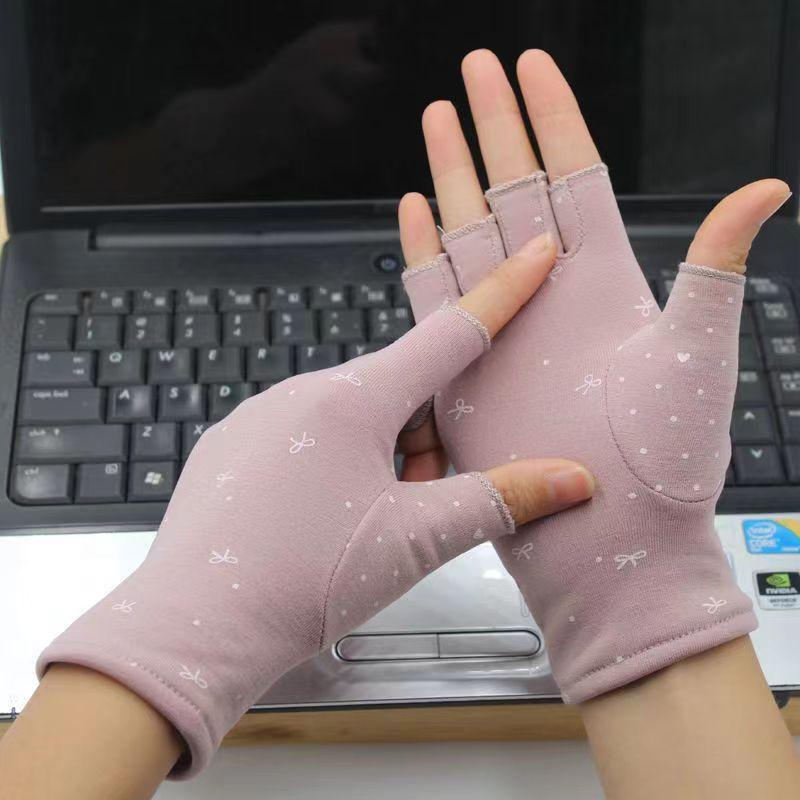 Guantes sin dedos de medio dedo para mujer para otoño e invierno, cepillados, gruesos, con forro polar, para trabajo al aire libre, ciclismo, pantalla táctil, cálidos y resistentes al frío para estudiantes
