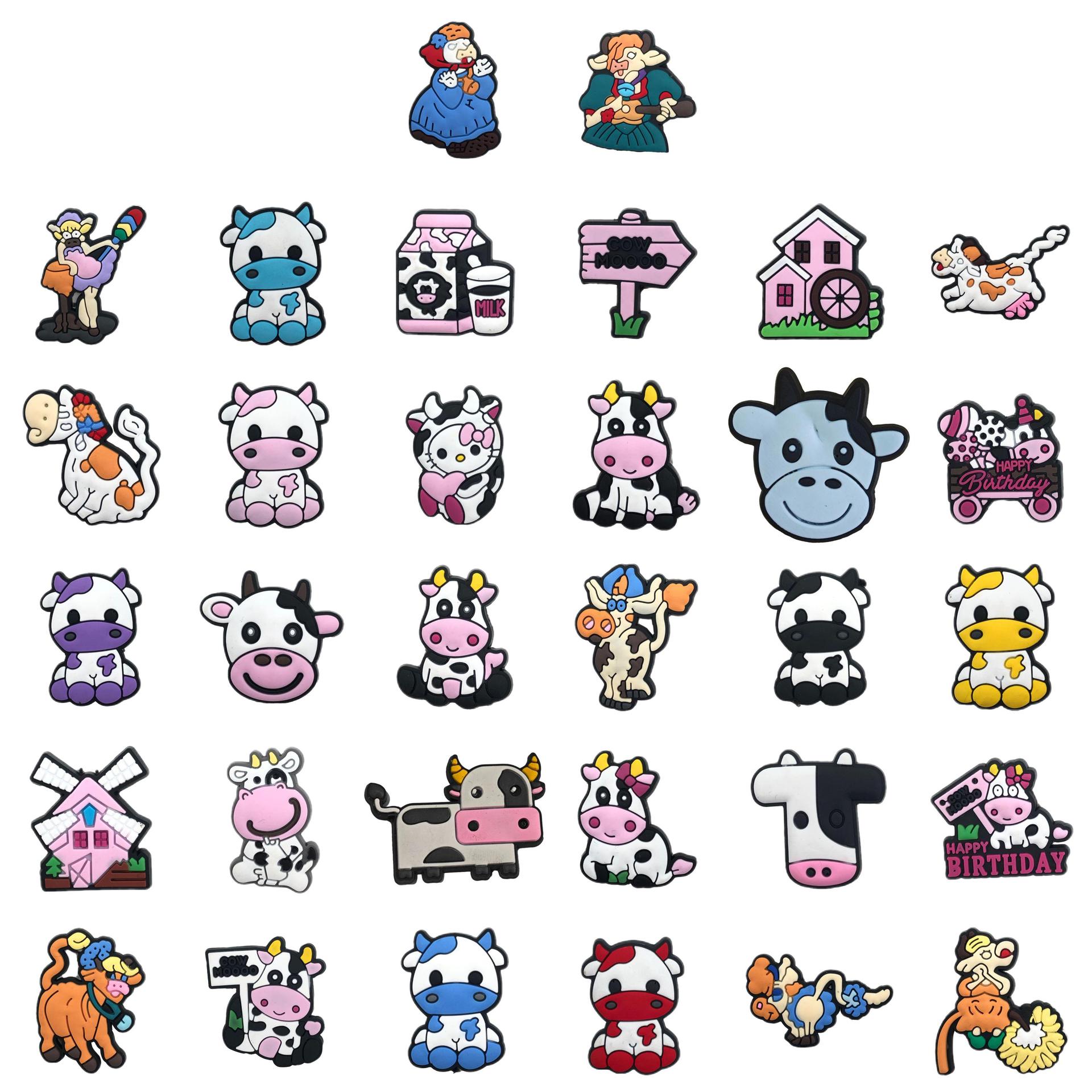 Hebilla de zapato de PVC de la serie Cow 32, con forma de flor de plástico, para fiesta navideña, accesorios extraíbles para zapatos