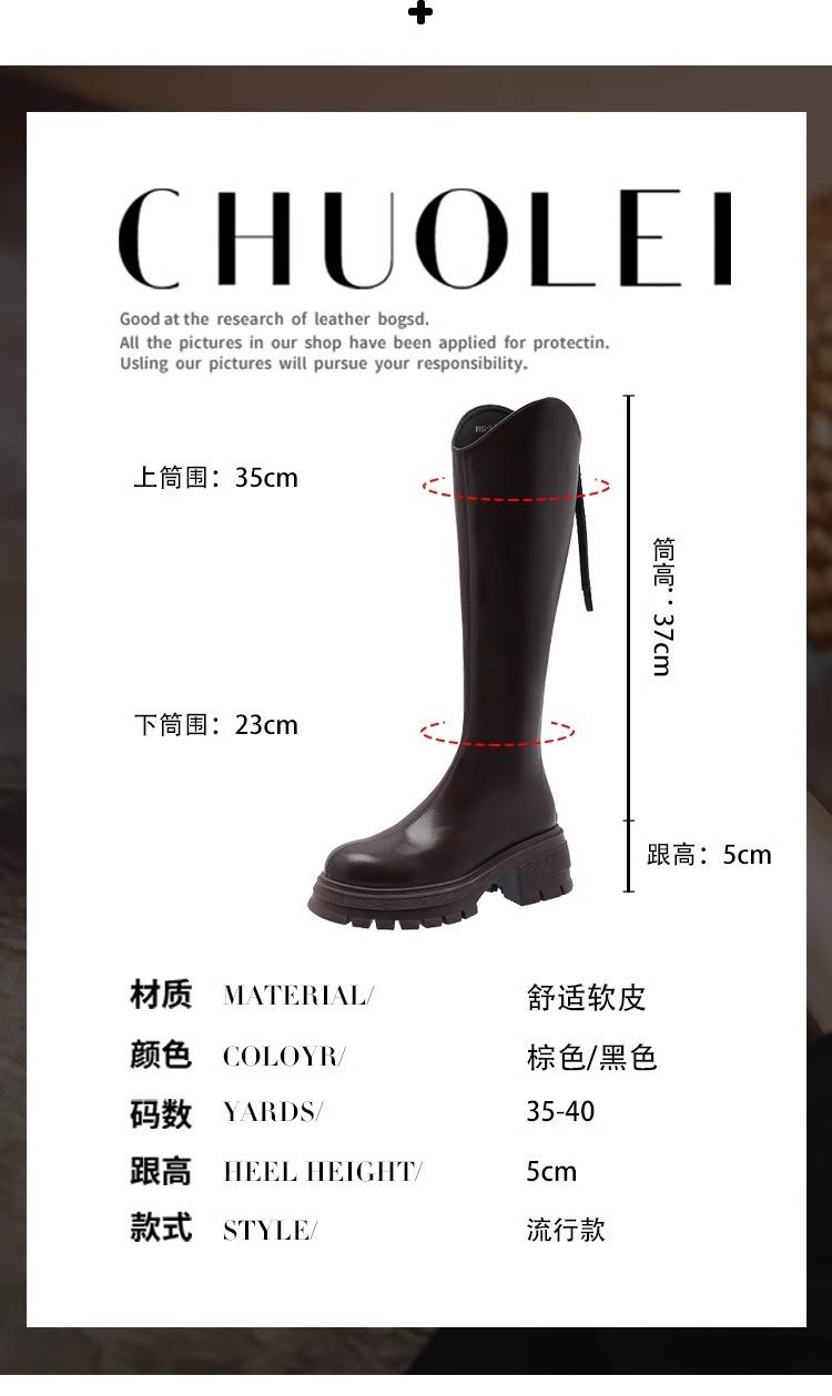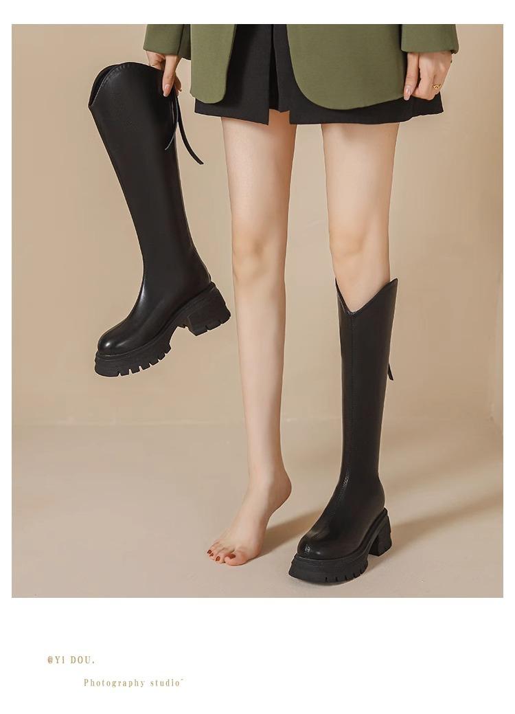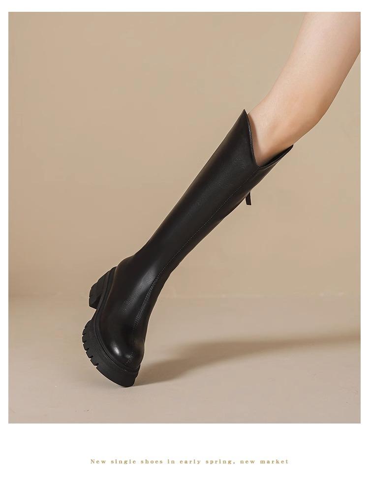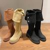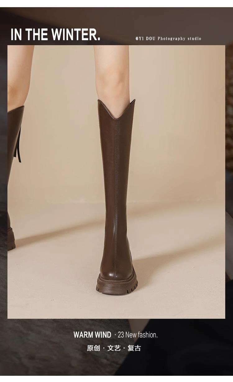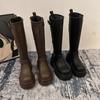 Botas Largas con Boca en V para Mujer 2025 Otoño Nuevo Marrón Pequeño Aumento Suela Gruesa Caña Alta Hasta la Rodilla Botas de Caballero