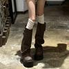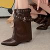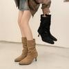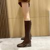 [Largo de pierna delgada] ~ Botas de tacón alto marrón con cabeza cuadrada pequeña para mujer, otoño/invierno 2023