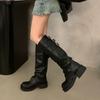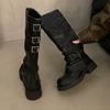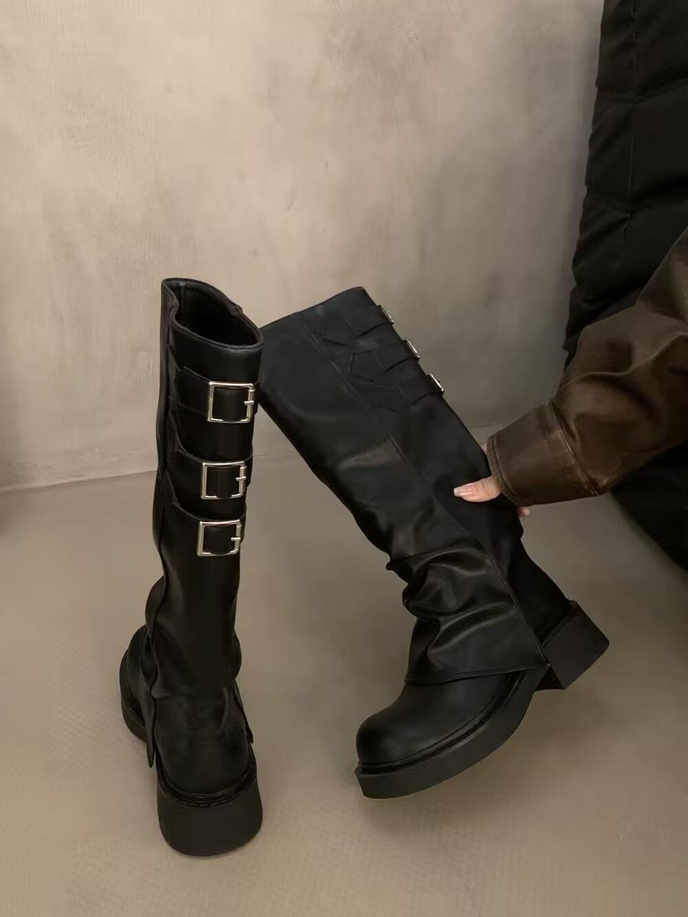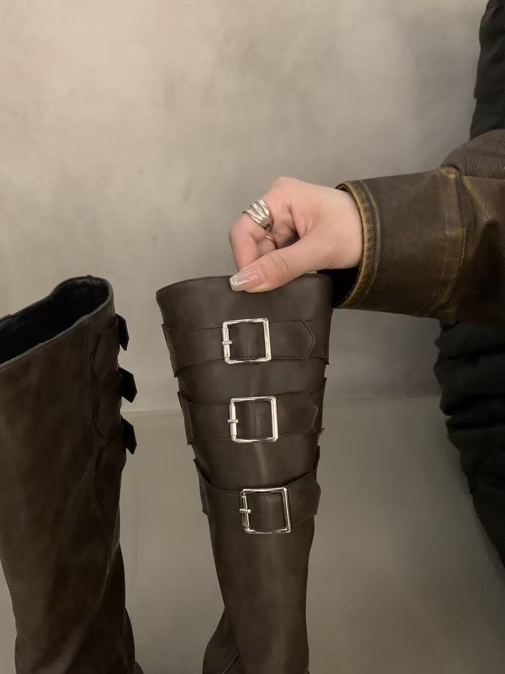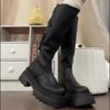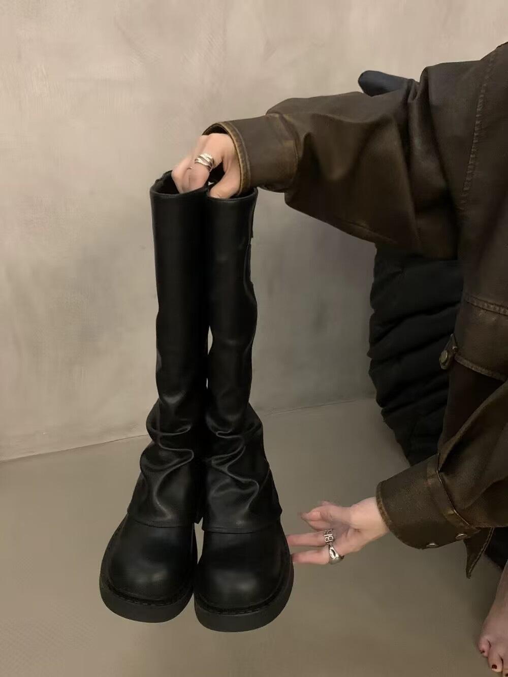 Botas altas marrones para mujer, recién llegadas en 2024, con pantalones, botas de suela gruesa, botas occidentales retro, botas altas casuales elegantes.