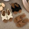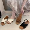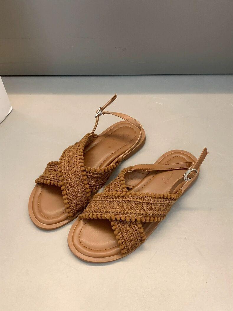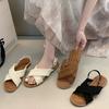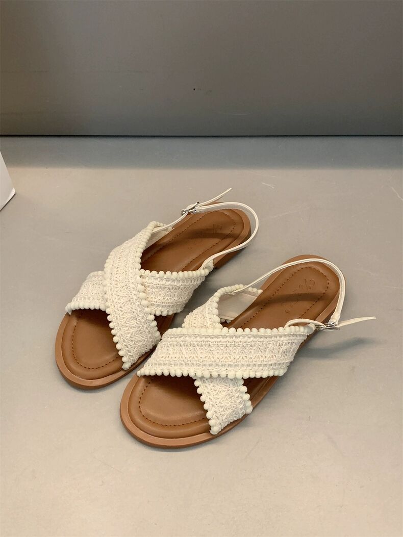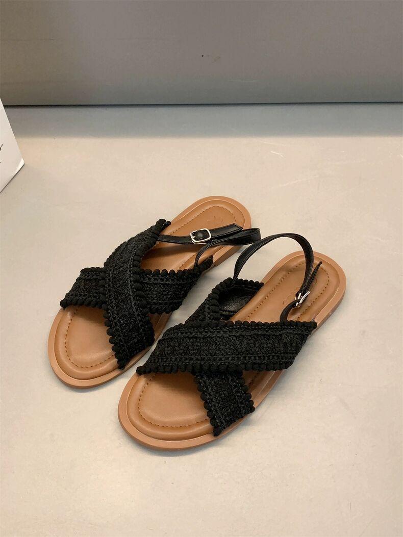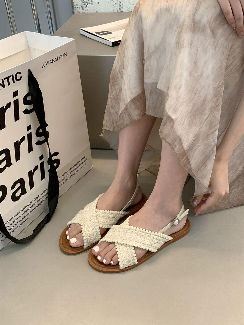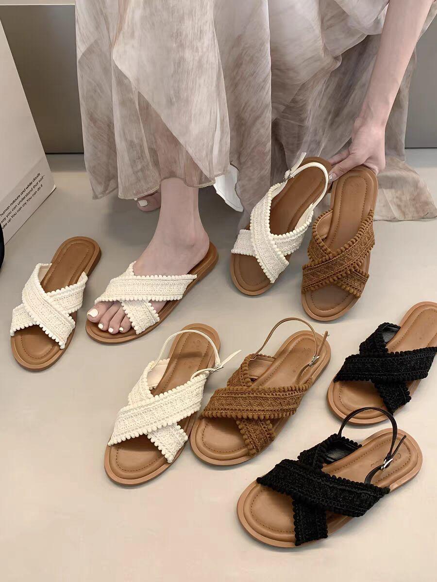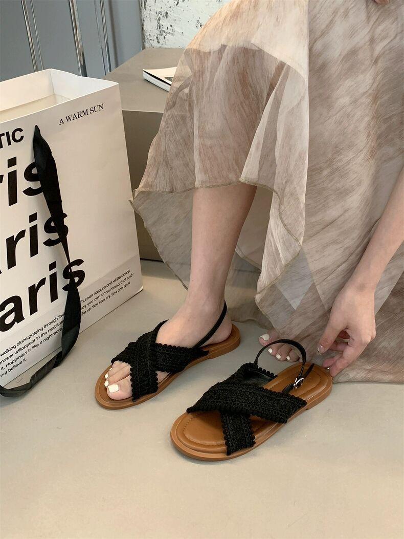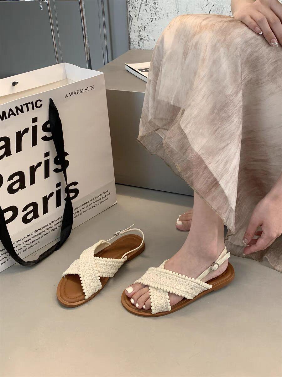 Sandalias planas retro tejidas pequeñas para mujer, zapatos de verano, ropa exterior, sandalias de playa de verano 2024