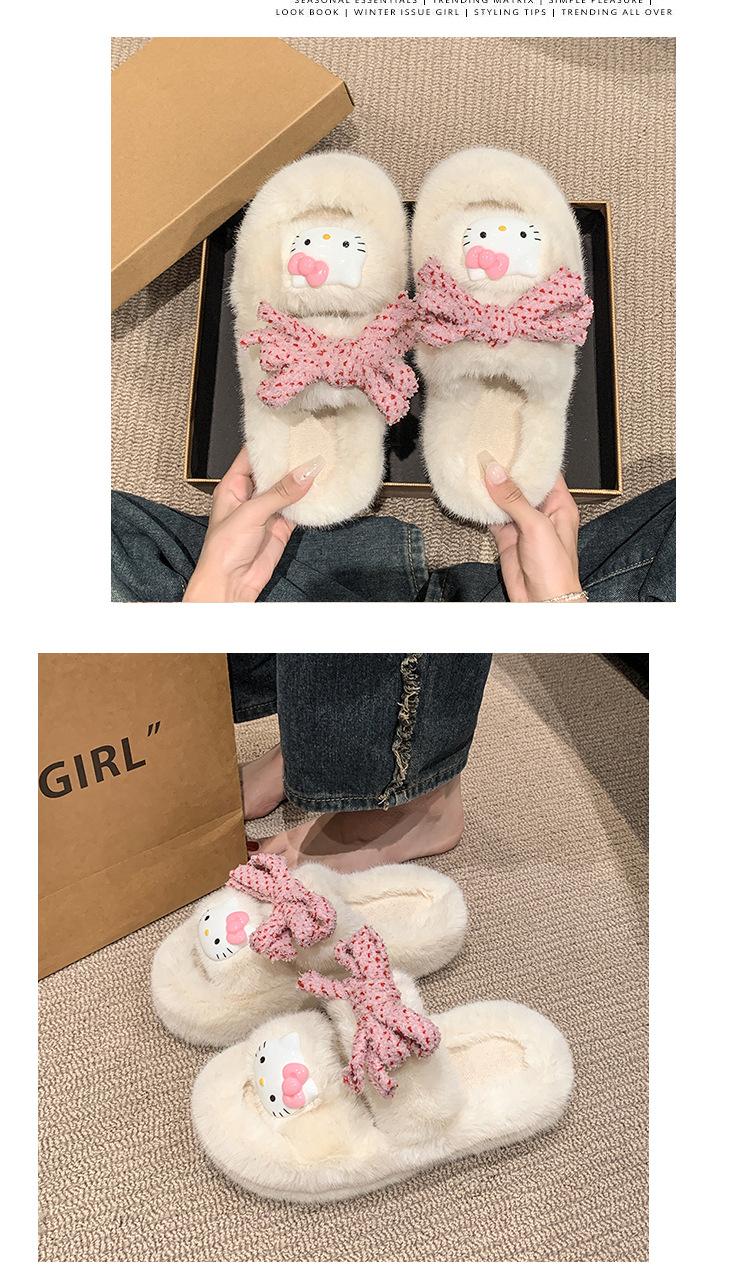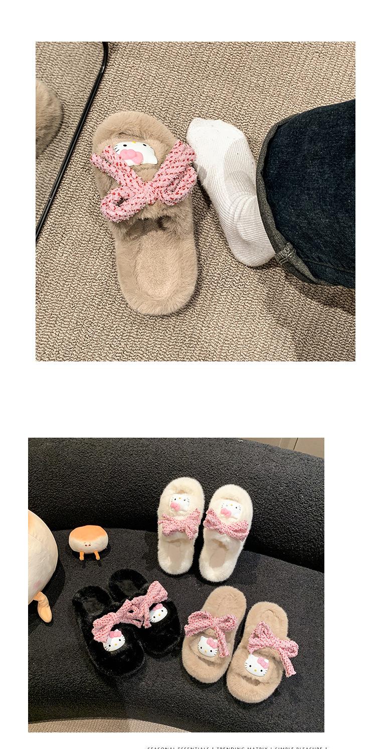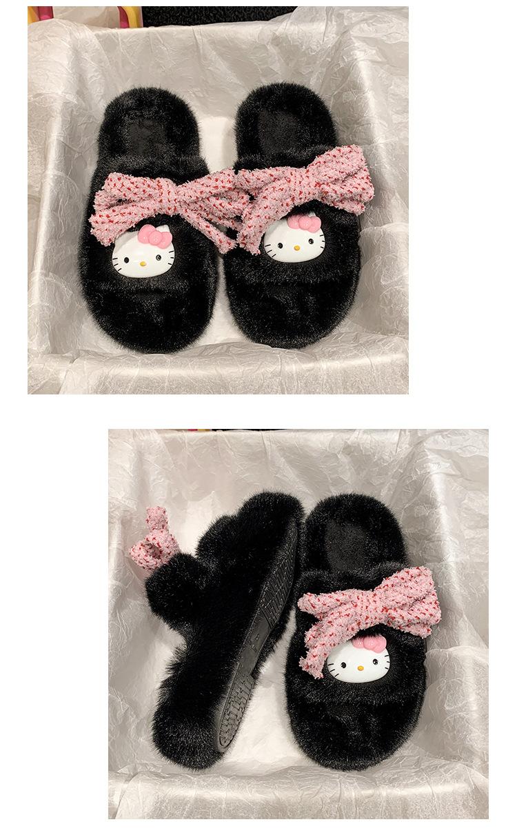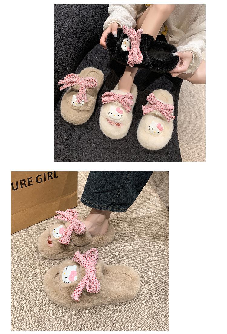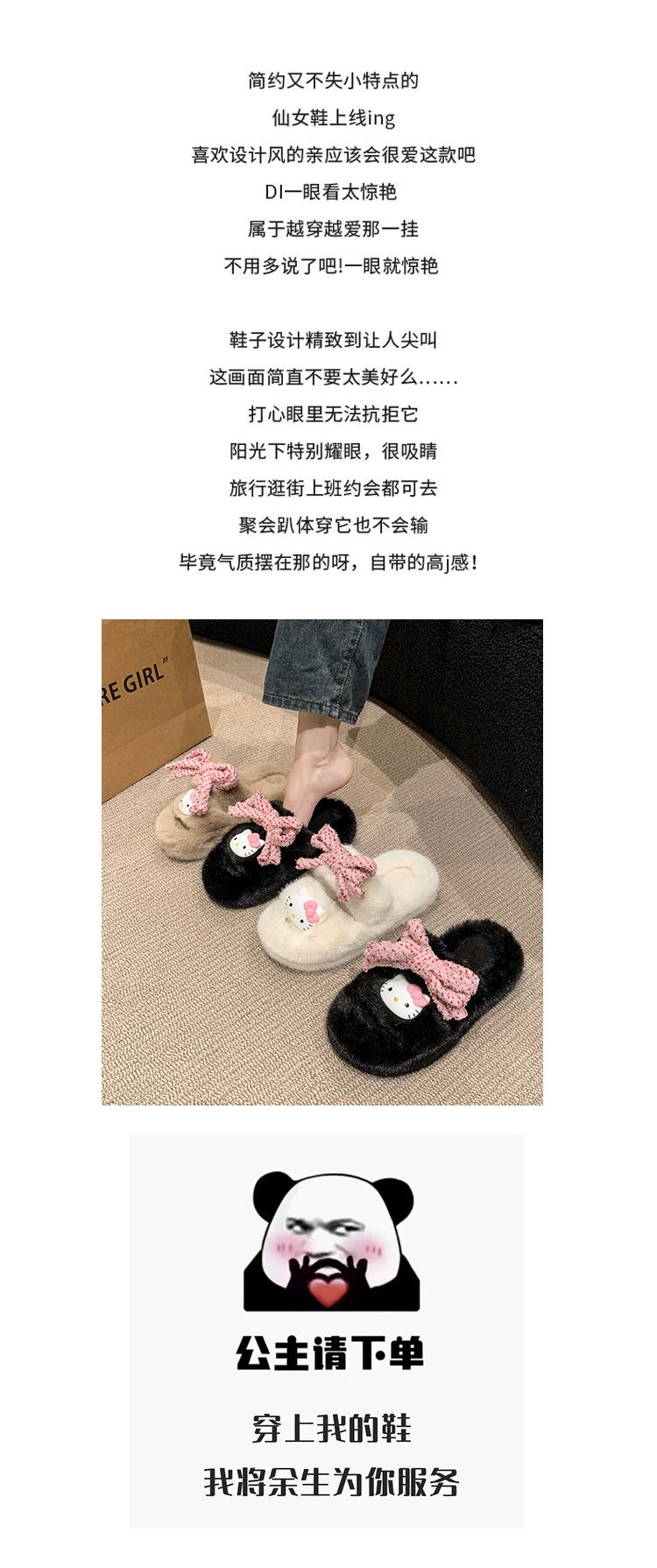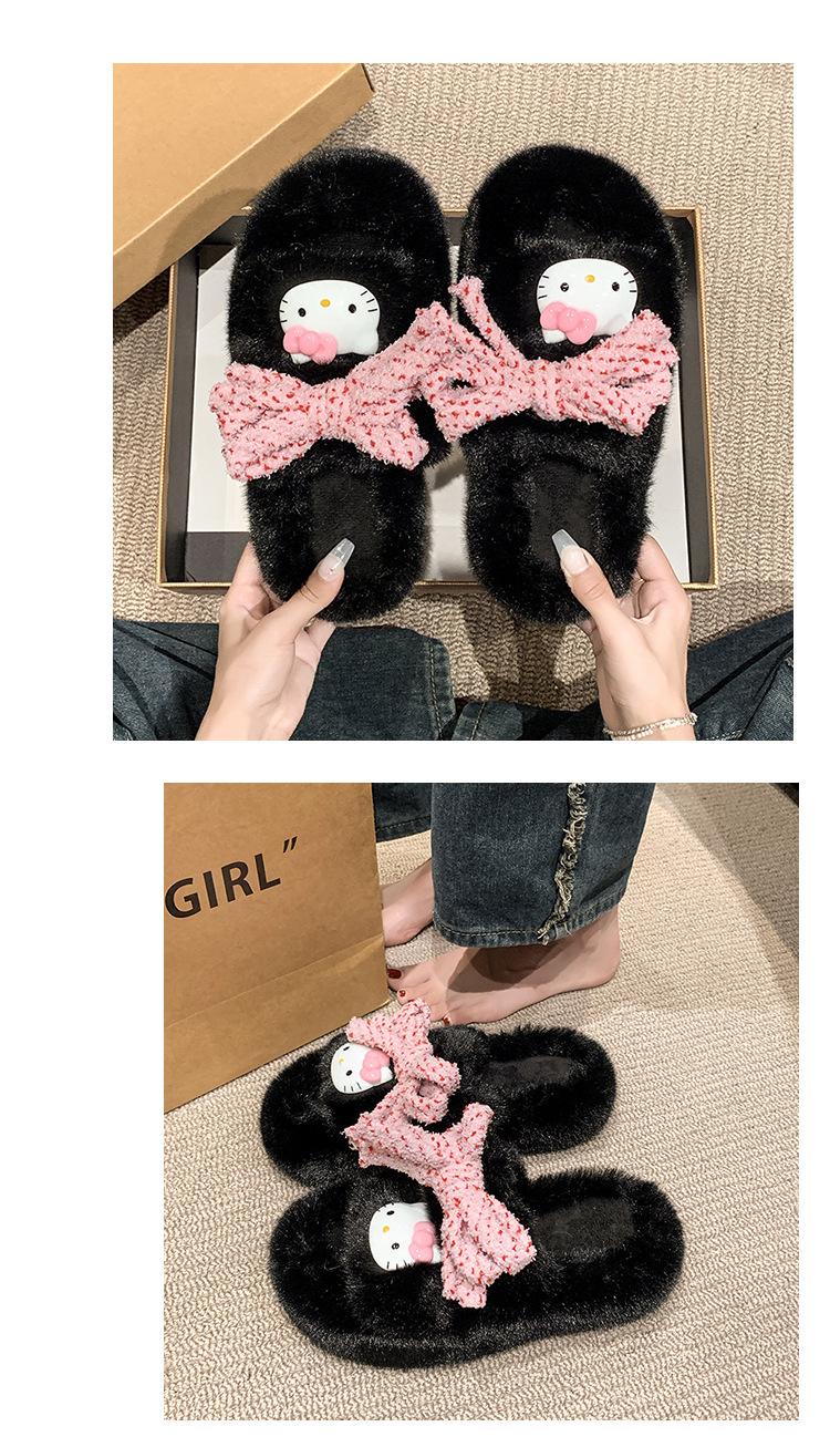 Pantuflas Mao Mao planas de estilo coreano con lazo de gato KT, pantuflas de felpa para el hogar, casuales, combinables y bonitas para otoño e invierno.
