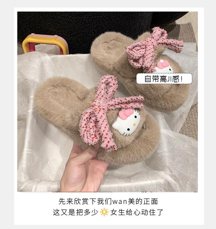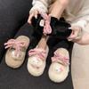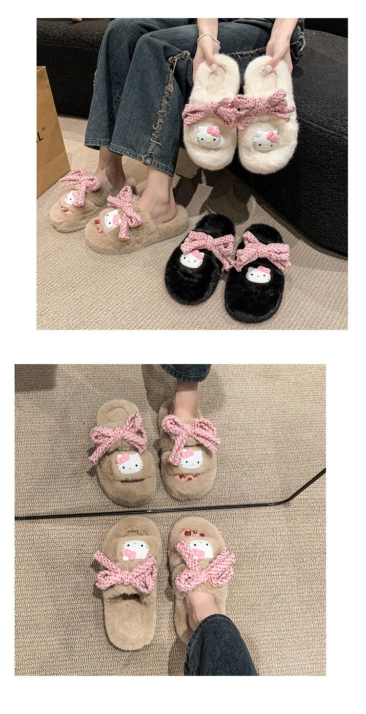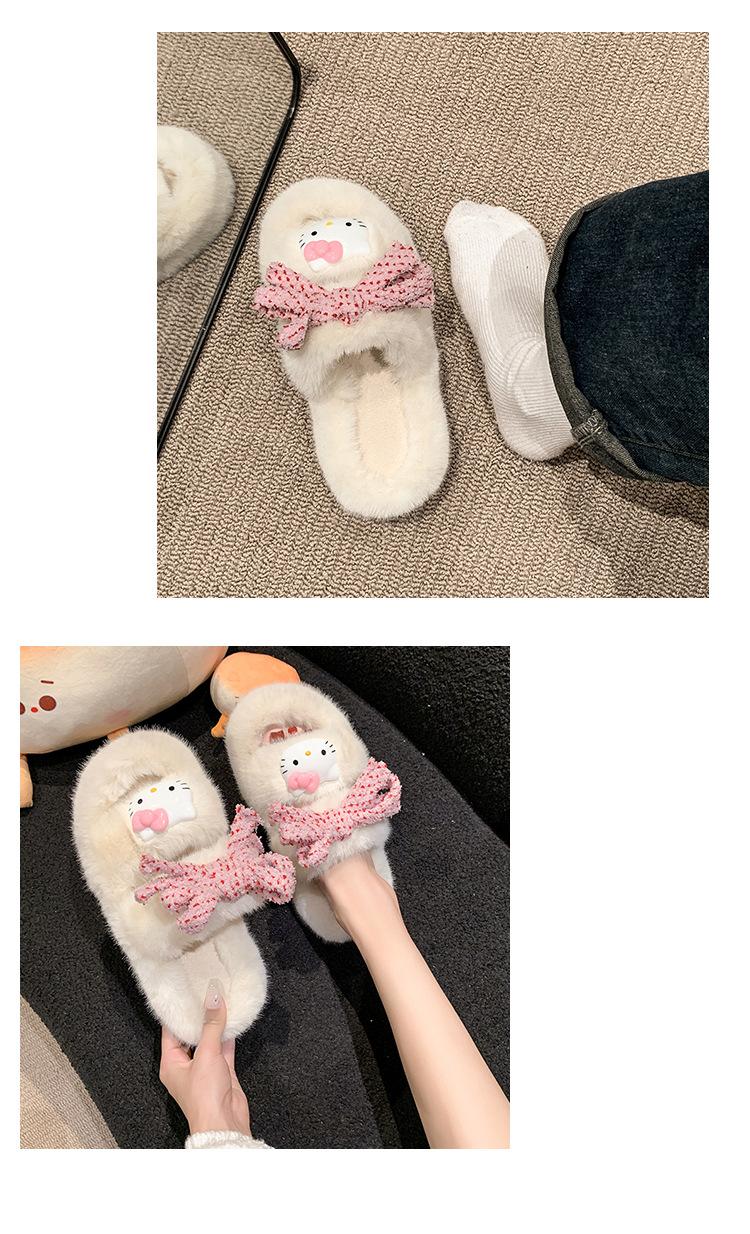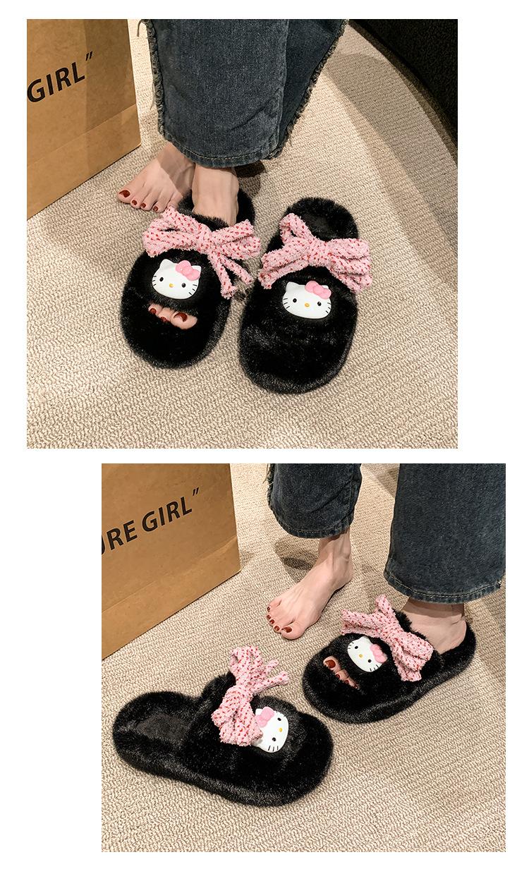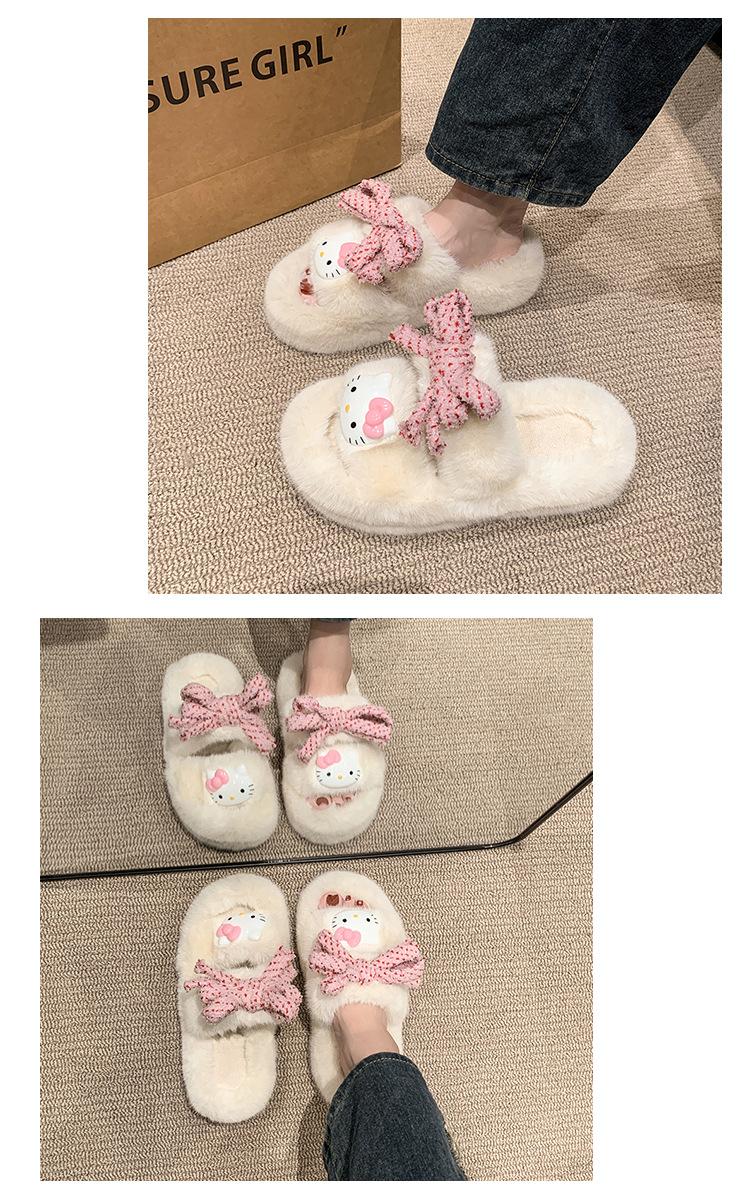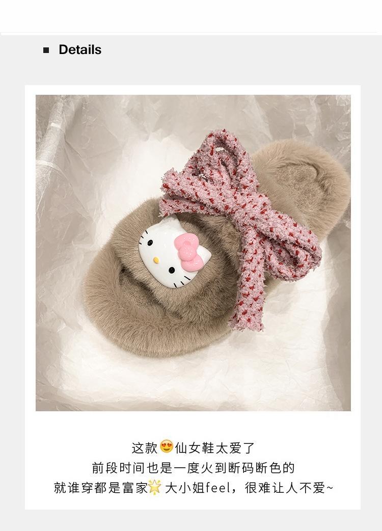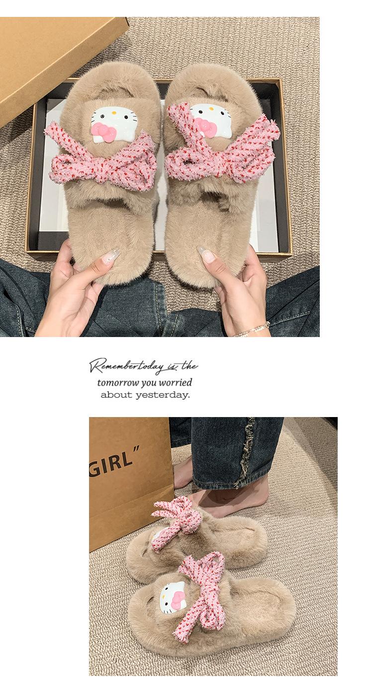 Pantuflas Mao Mao planas de estilo coreano con lazo de gato KT, pantuflas de felpa para el hogar, casuales, combinables y bonitas para otoño e invierno.