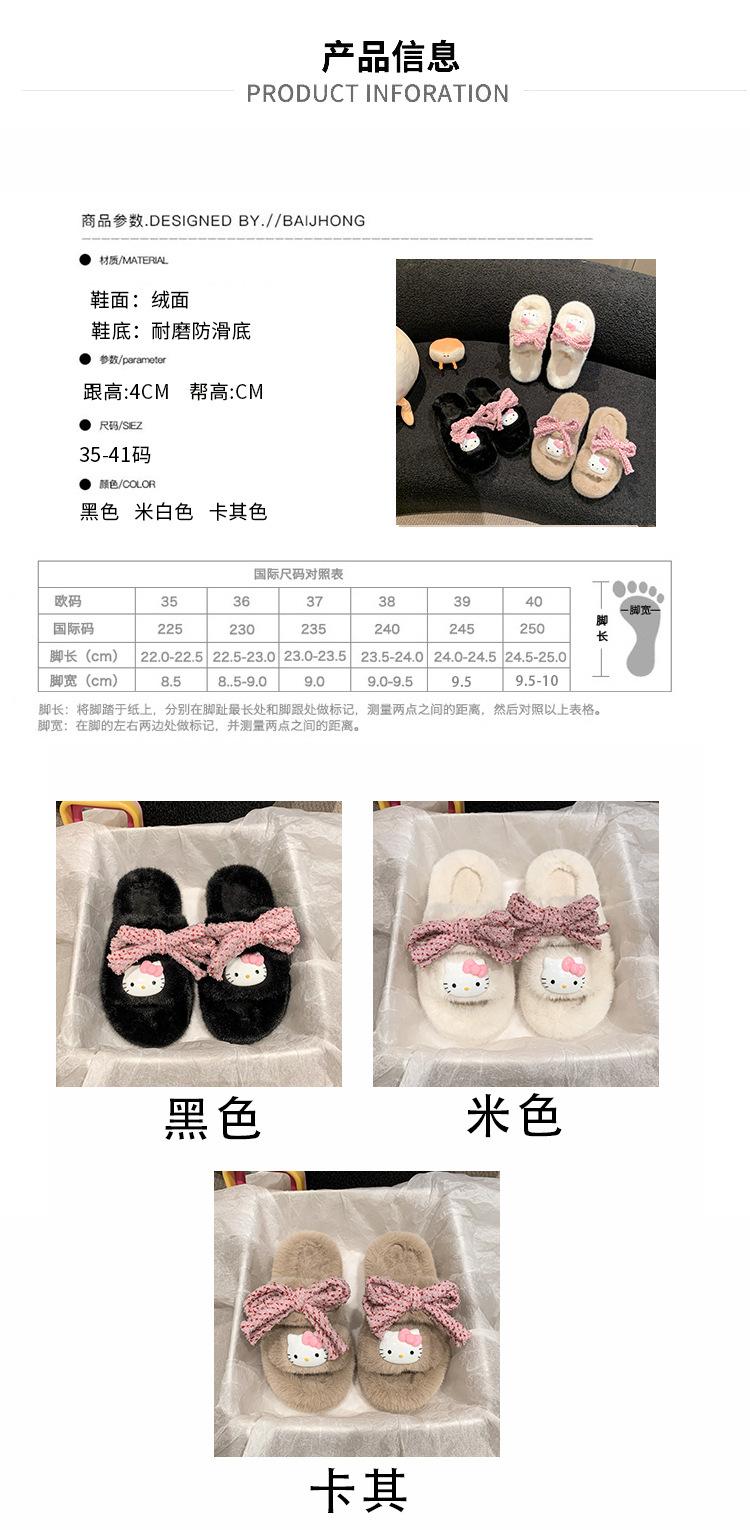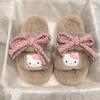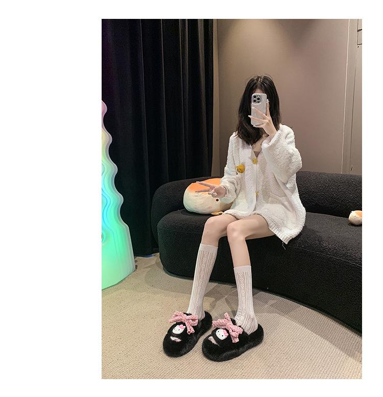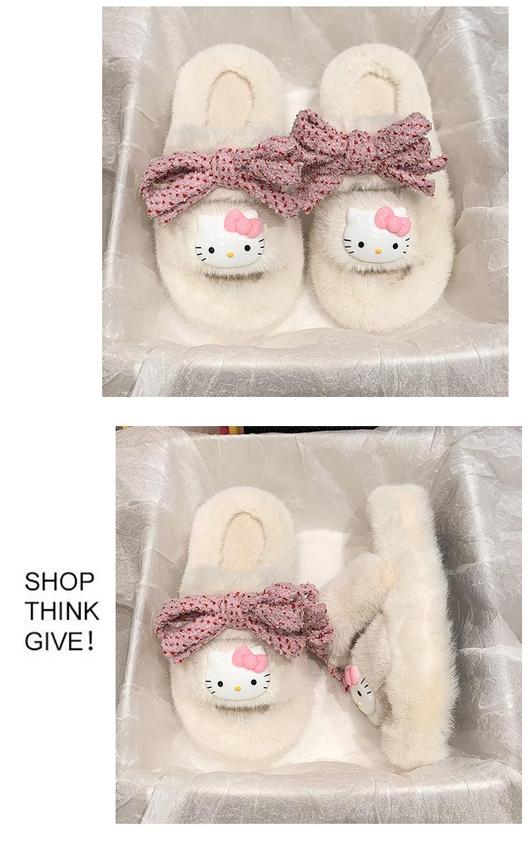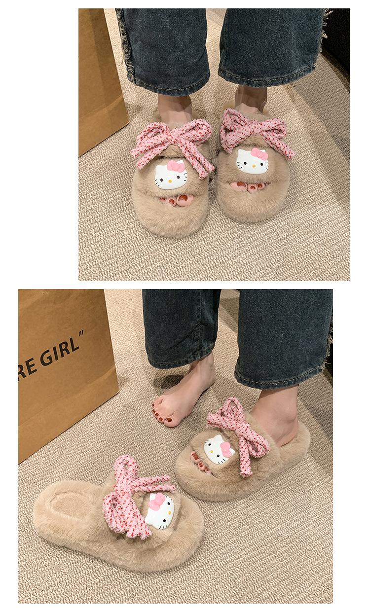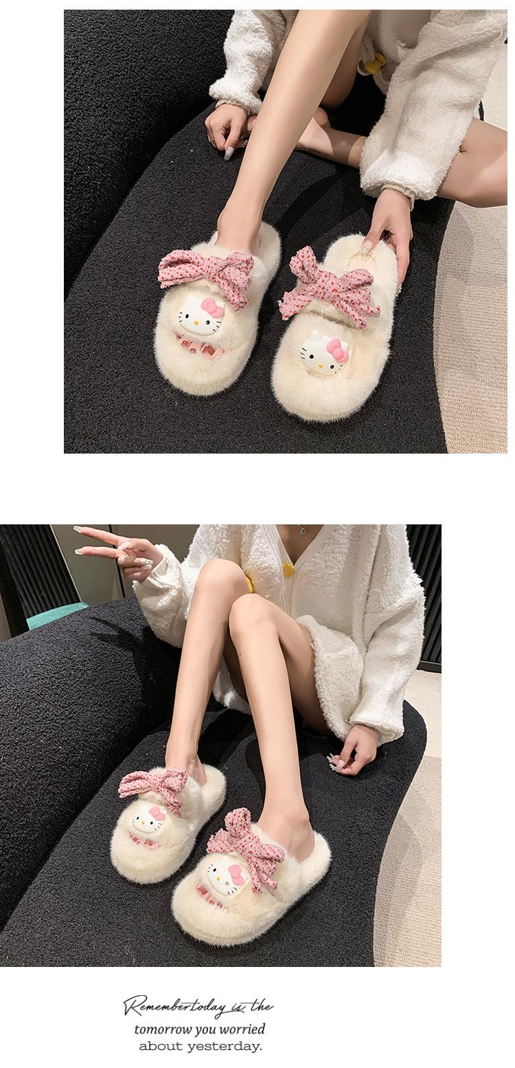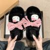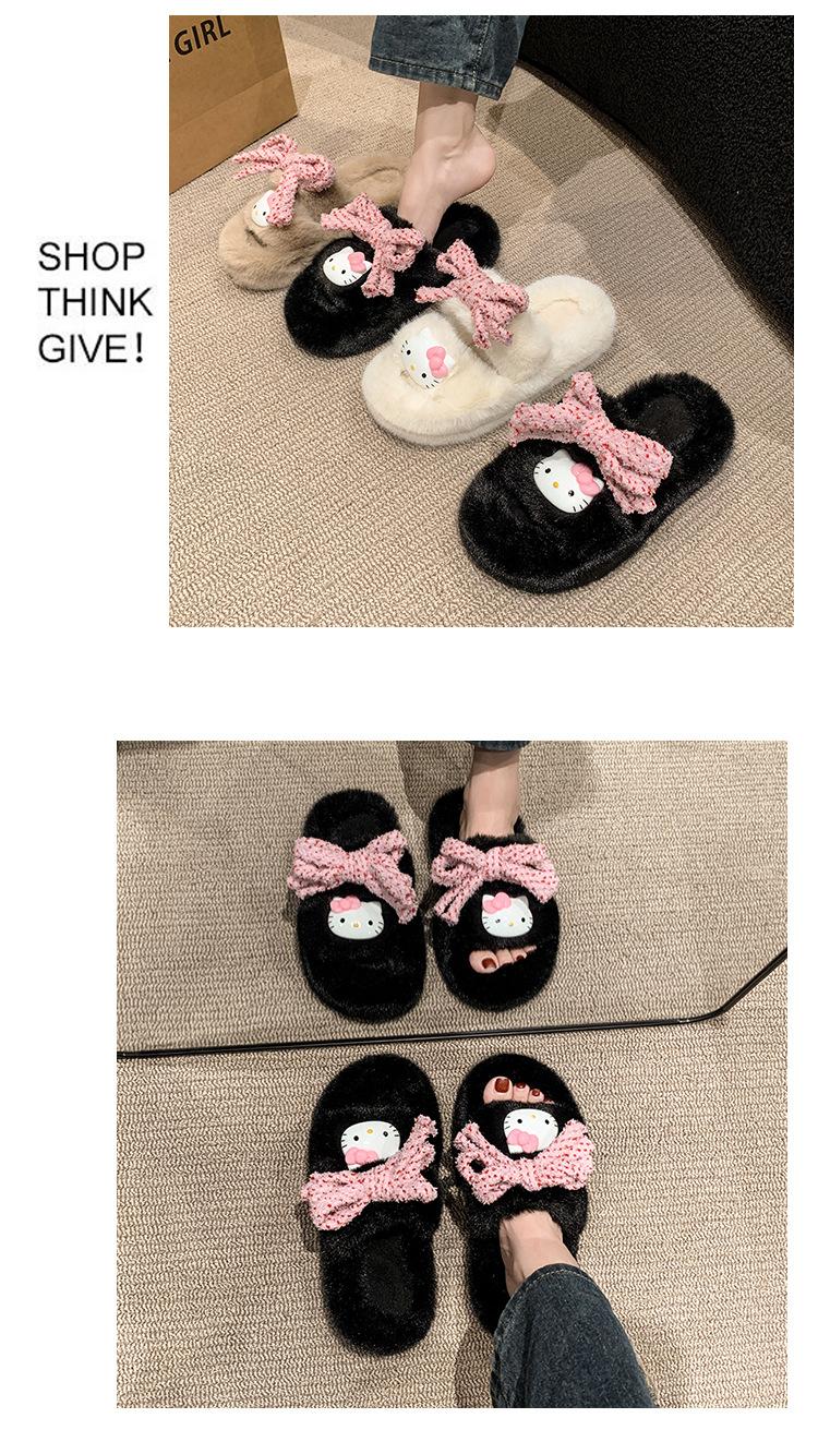 Pantuflas Mao Mao planas de estilo coreano con lazo de gato KT, pantuflas de felpa para el hogar, casuales, combinables y bonitas para otoño e invierno.
