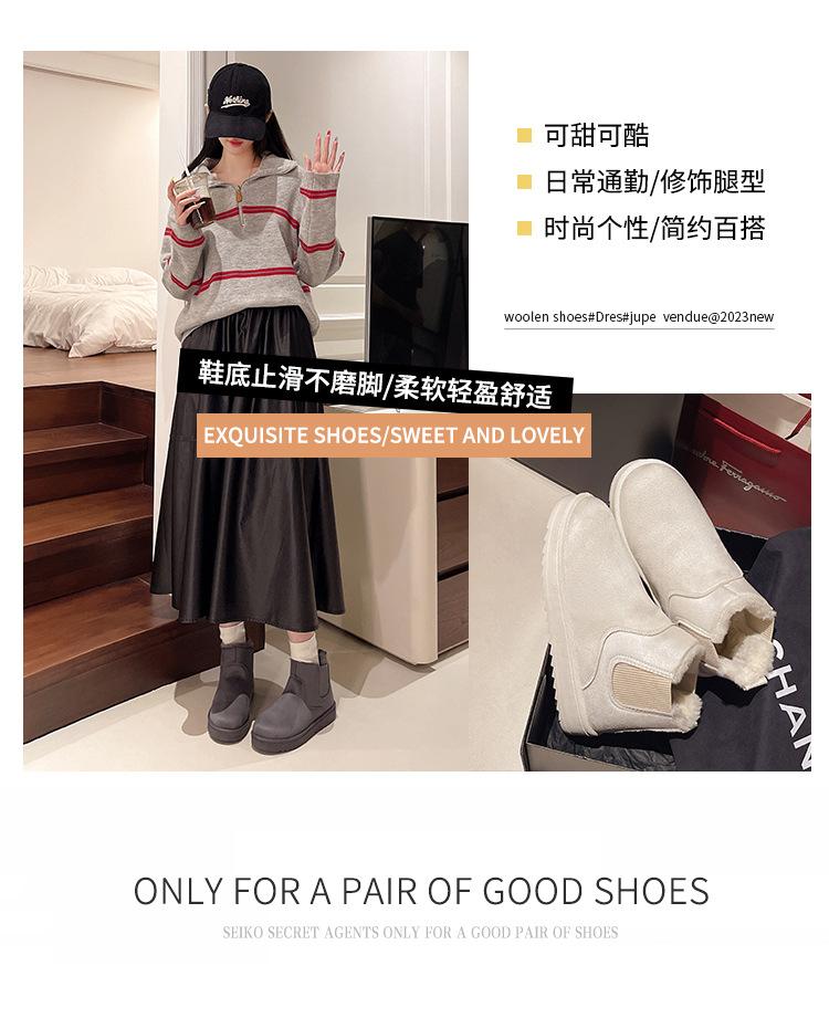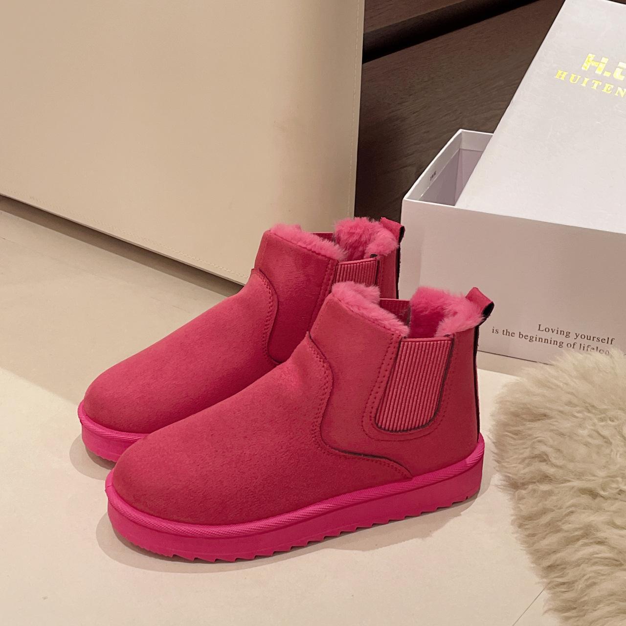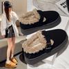 Botas de nieve de talla grande para mujer, otoño e invierno 2024, nuevas, con forro polar, moda gruesa, tubo corto, suela gruesa, un pedal, zapatos cálidos de algodón