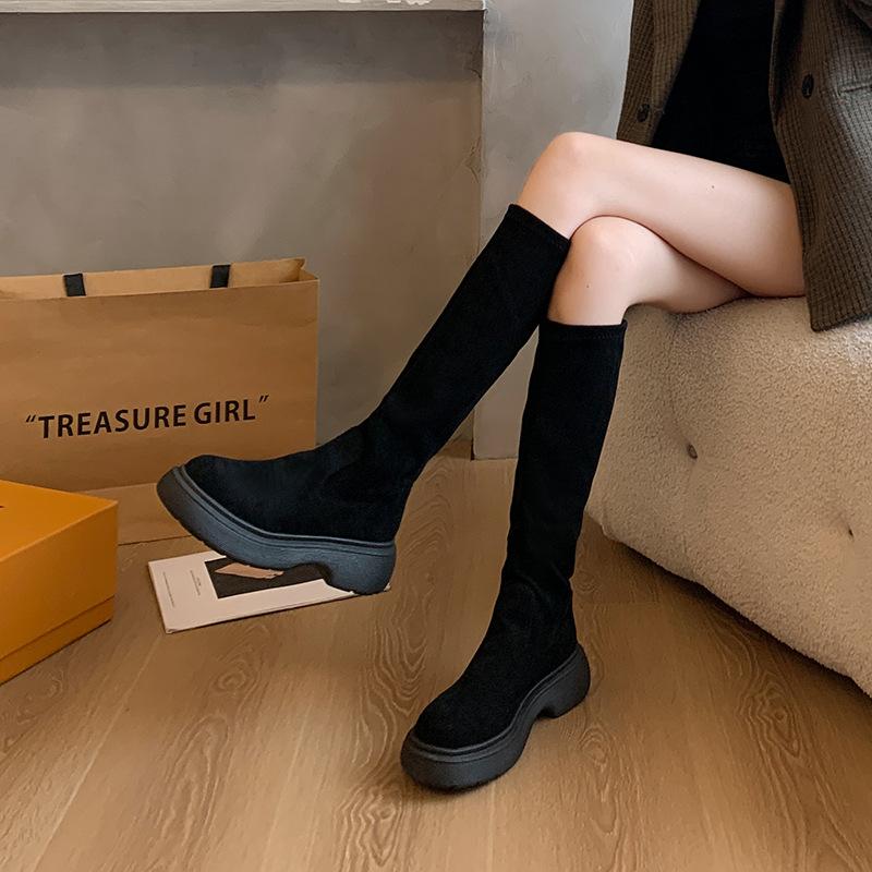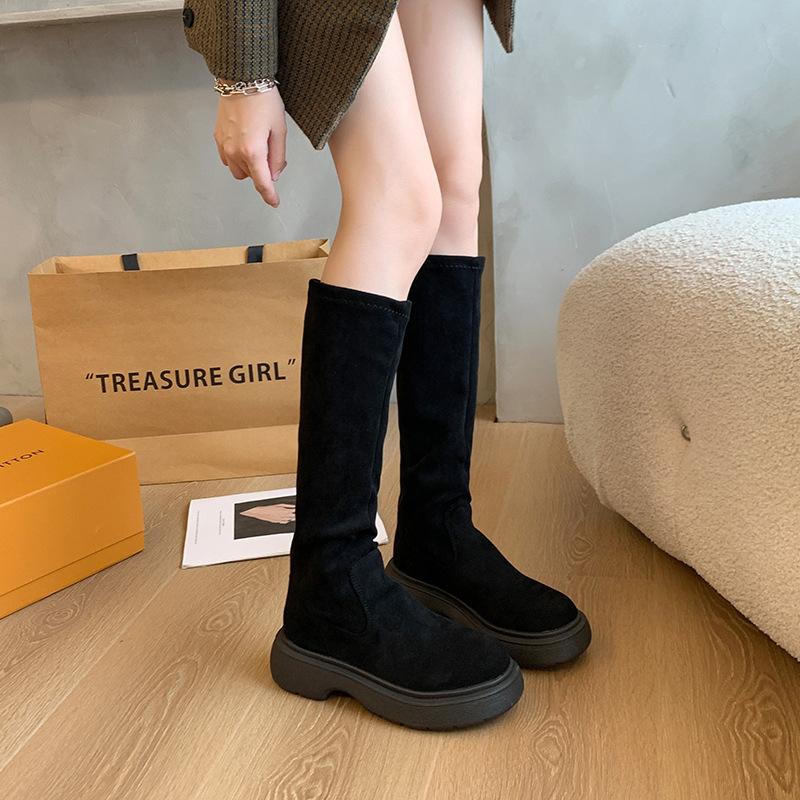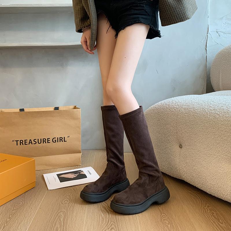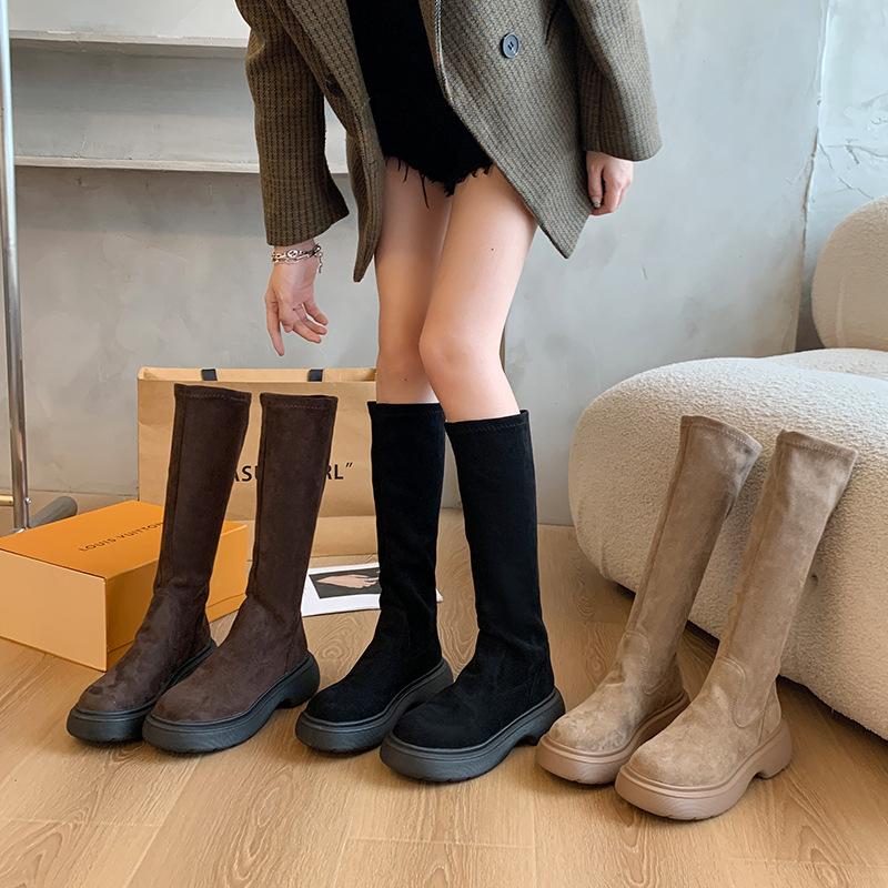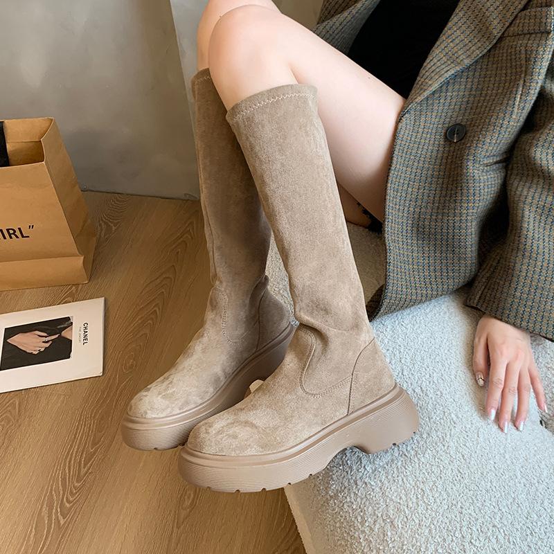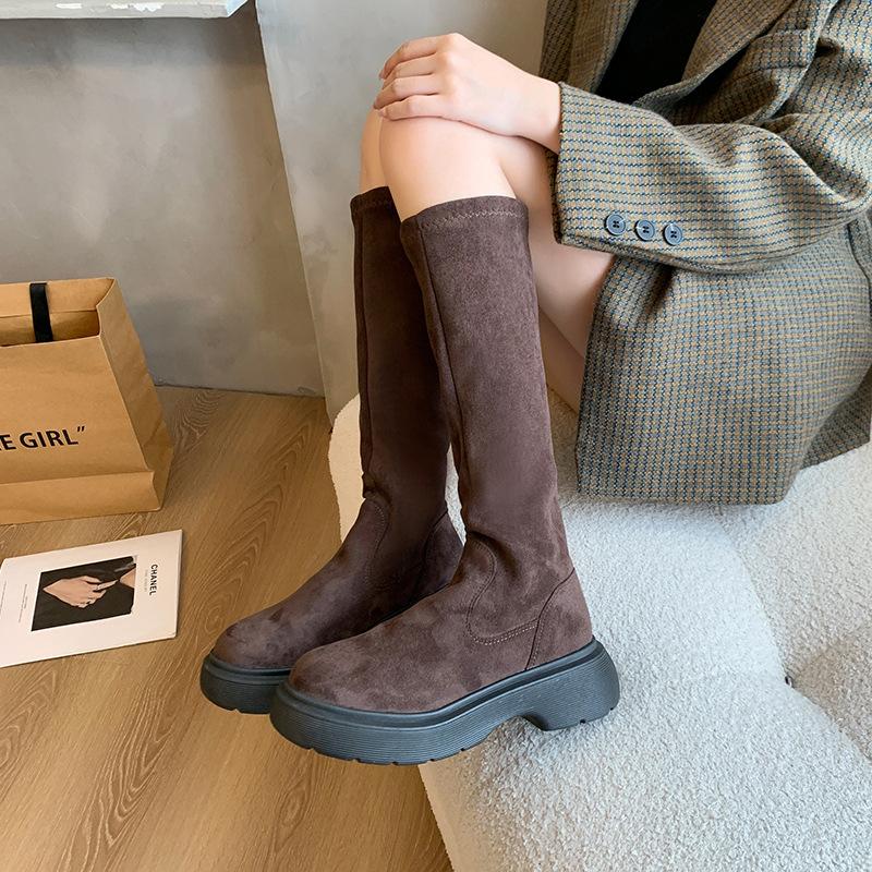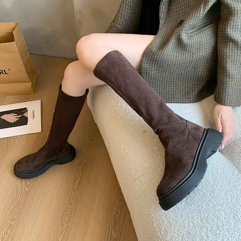 Botas Largas de Gamuza Otoño/Invierno 2024 Nuevas Pero Botas Largas hasta la Rodilla Botas Altas Retro con Forro Polar Botas de Caballero Elásticas para Mujer